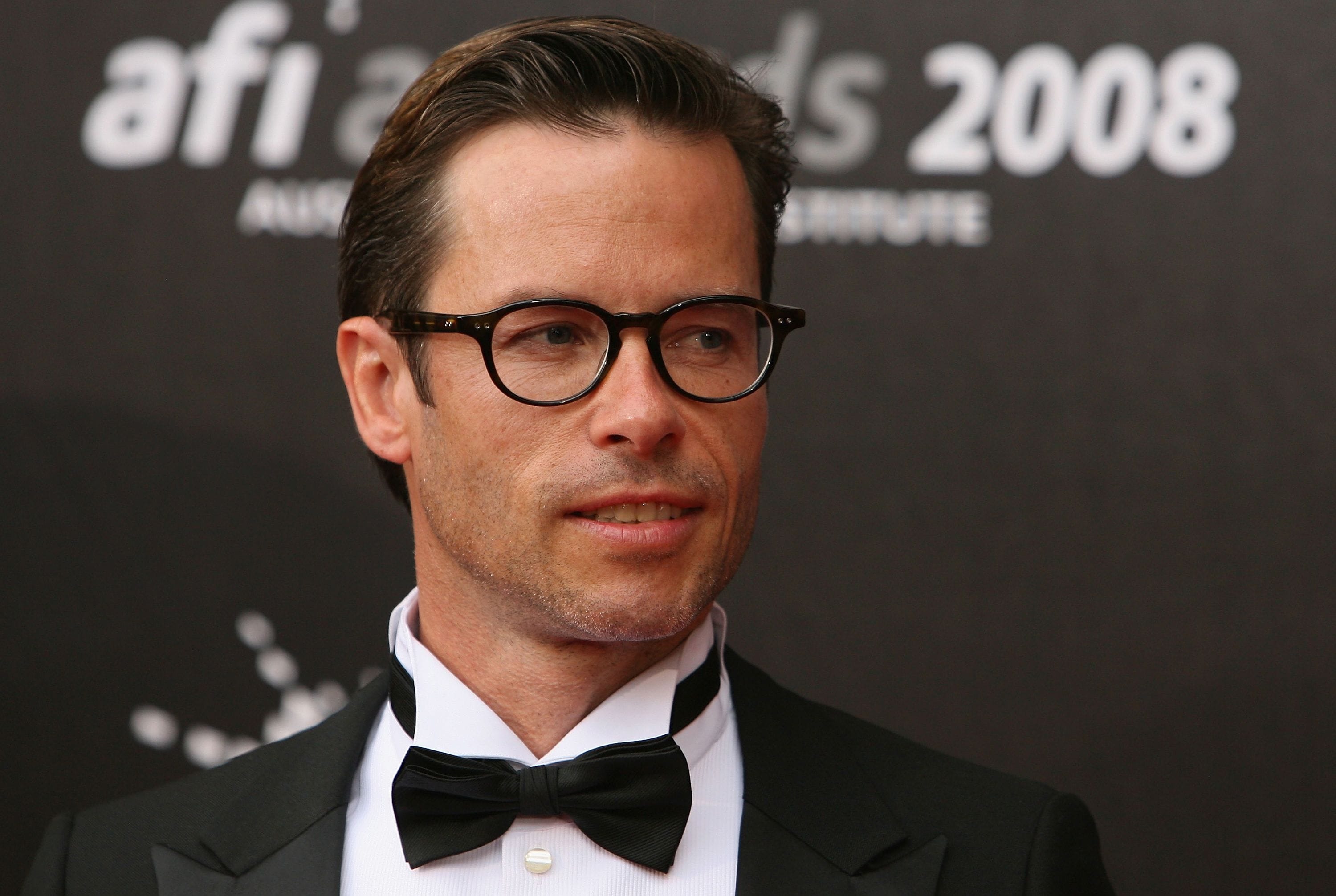 Description: A man wearing a suit and bow tie at an event with a black background and a black backdrop with a white and black logo.