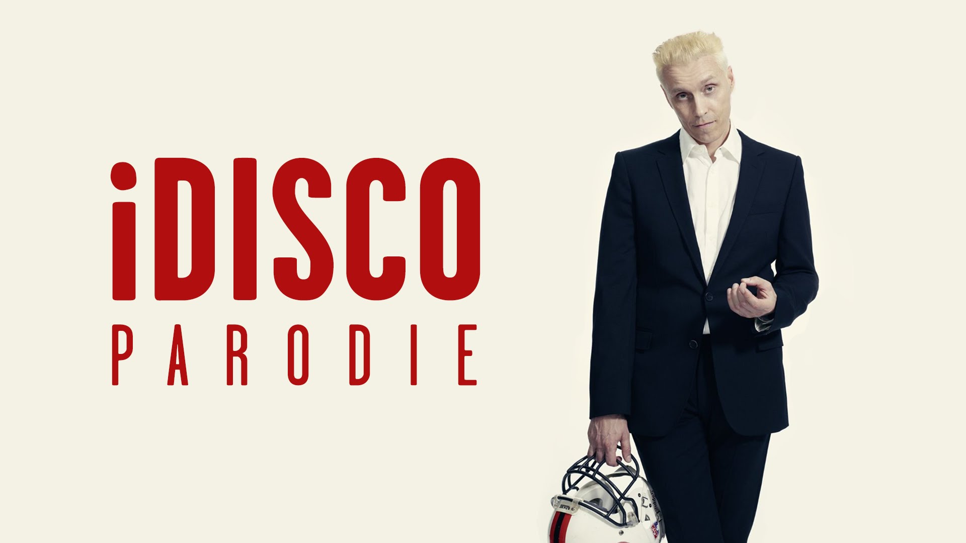 Description: A man in a suit holding a football helmet and a helmet in his hand with the words disco paroie.