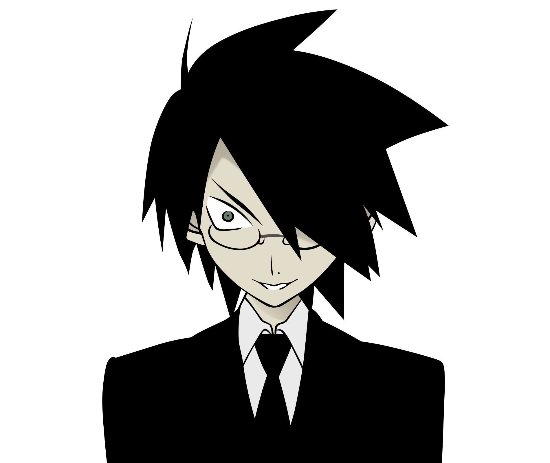 Description: A man in a suit and tie with glasses on his face and a black background with a white outline.