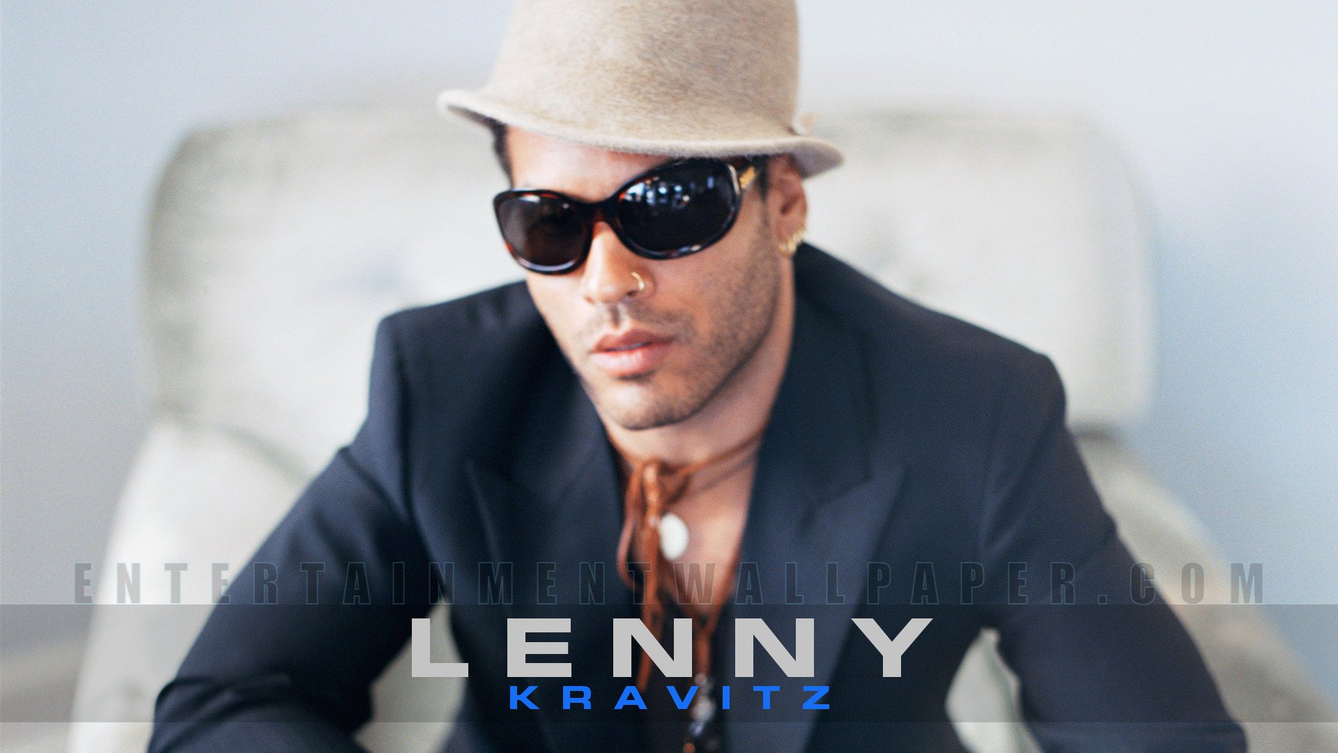 Description: A man in a suit and hat sitting in a chair wearing sunglasses and a tie with a hat on.