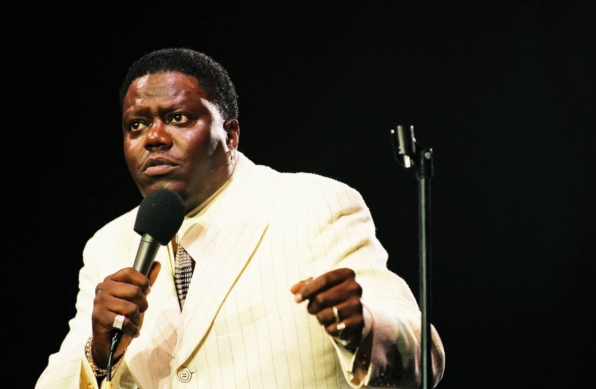 Description: A man in a suit holding a microphone in his hand and looking at the camera with a serious look on his face.