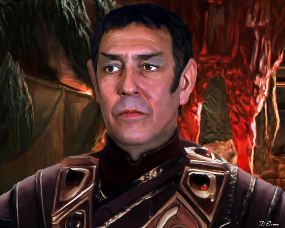 Description: A man in a suit with a red background and a red background behind him is a painting of a man in a suit.