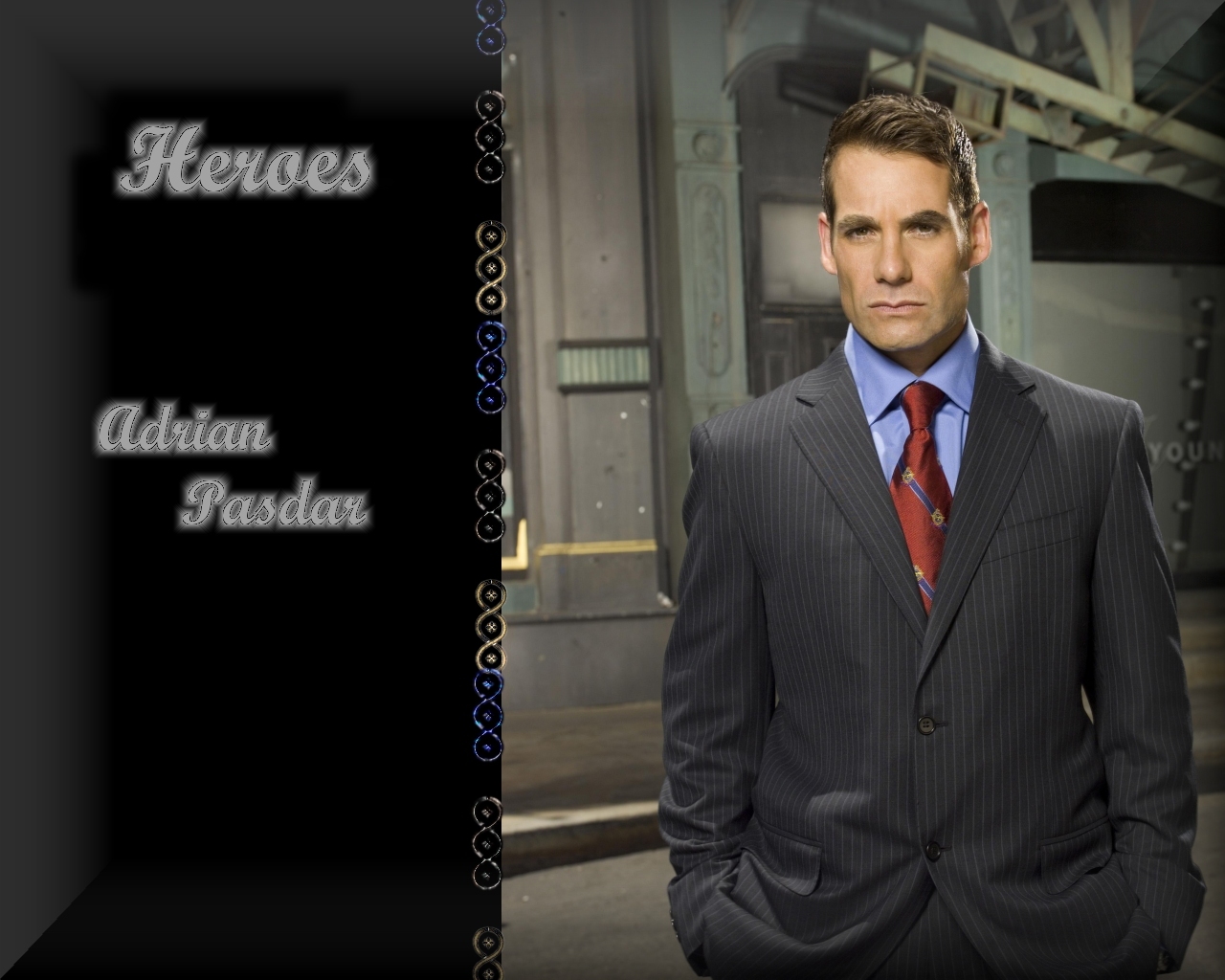Description: A man in a suit and tie standing in front of a black background with the words heroes written on it.