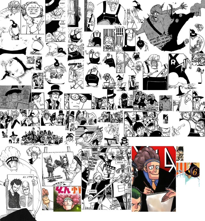 Description: A bunch of black and white pictures with a man in a suit and tie on it's face.