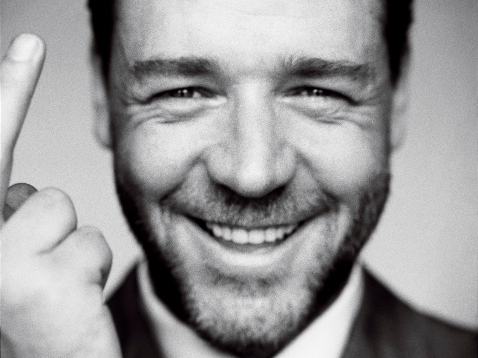 Description: A man in a suit and tie making a peace sign with his hand and smiling at the camera with a smile on his face.