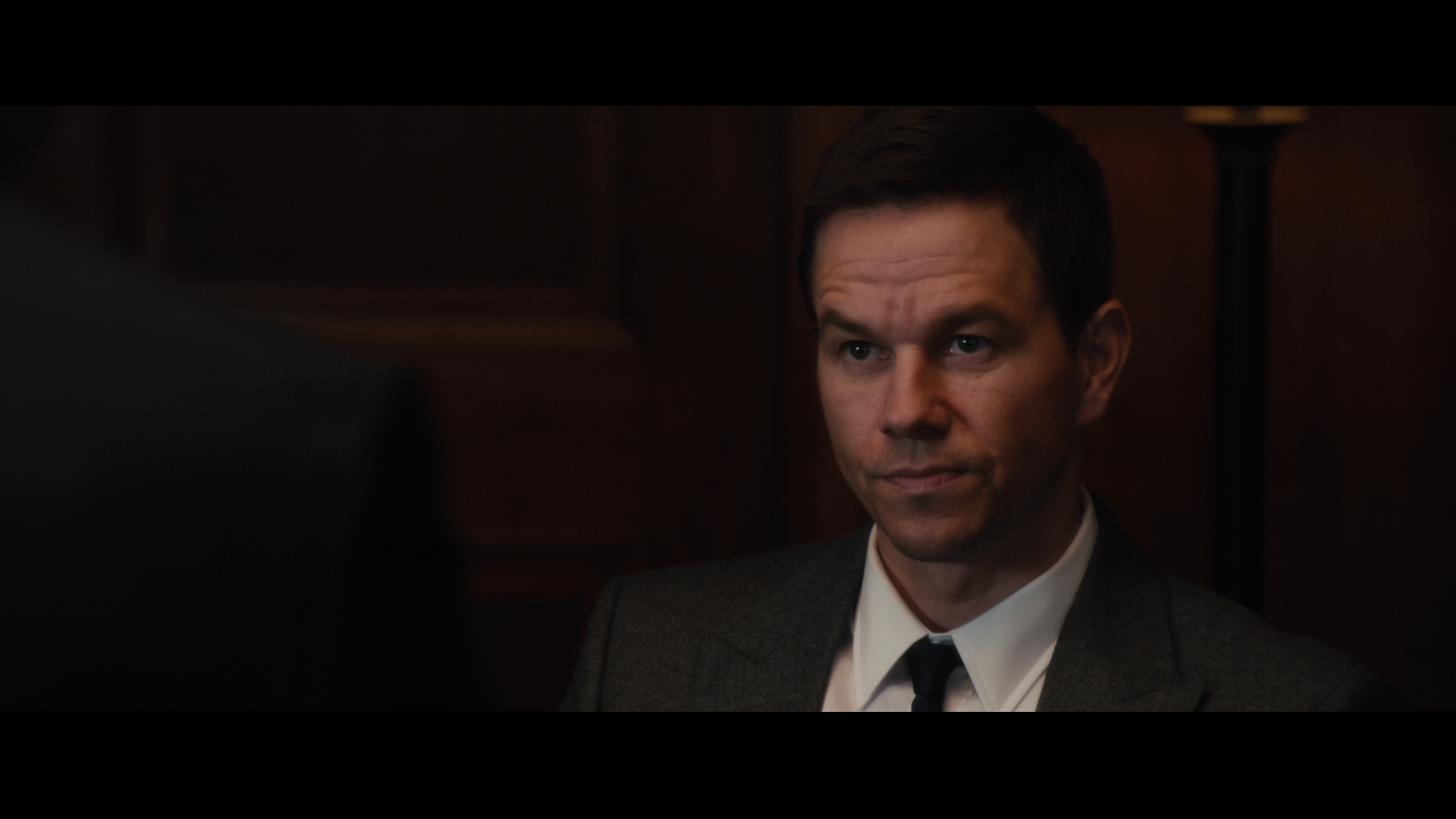 Description: A man in a suit and tie looking at the camera with a serious look on his face and shoulders.