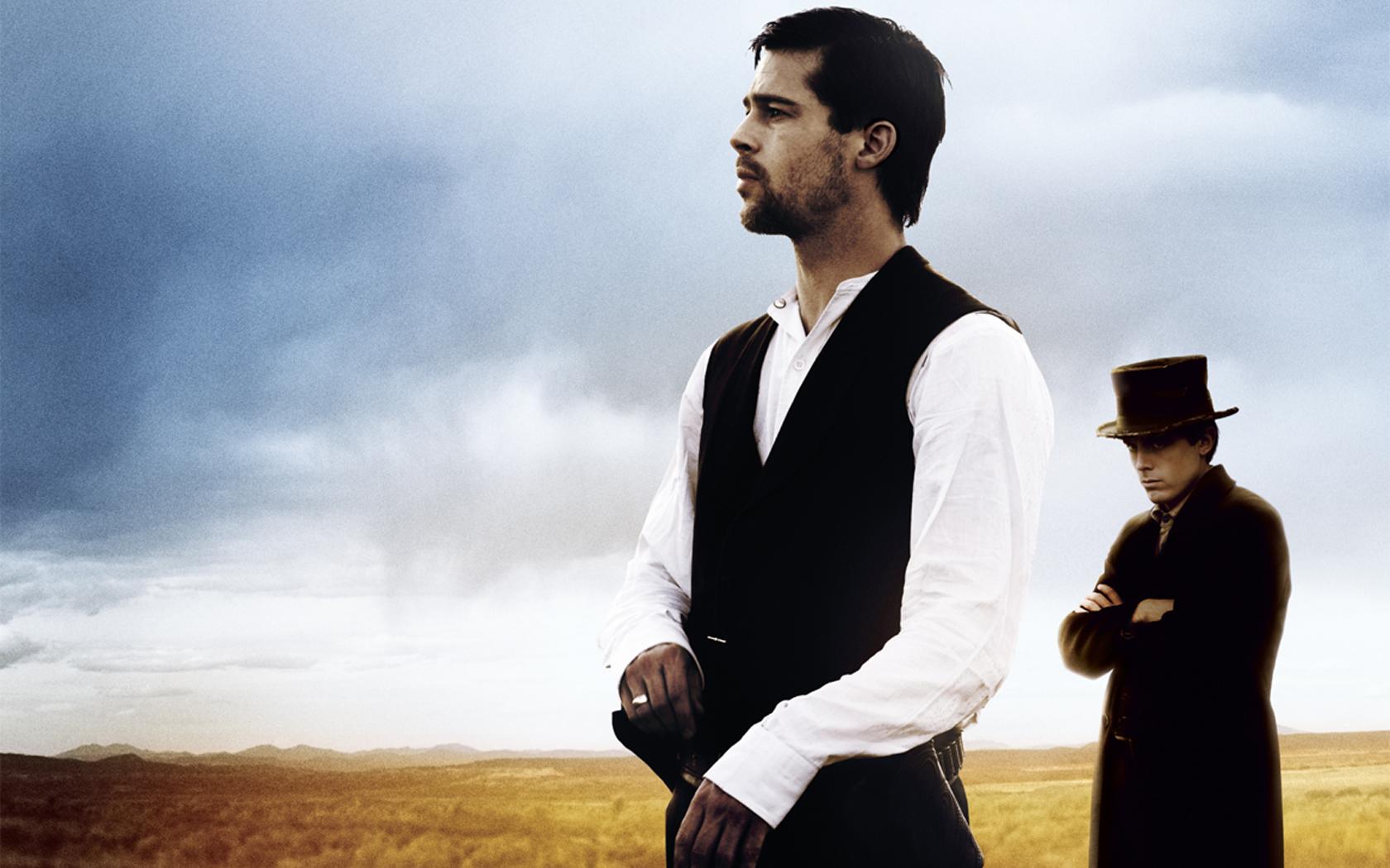 Description: A man in a suit and tie standing next to a man in a top hat and coat in a field.