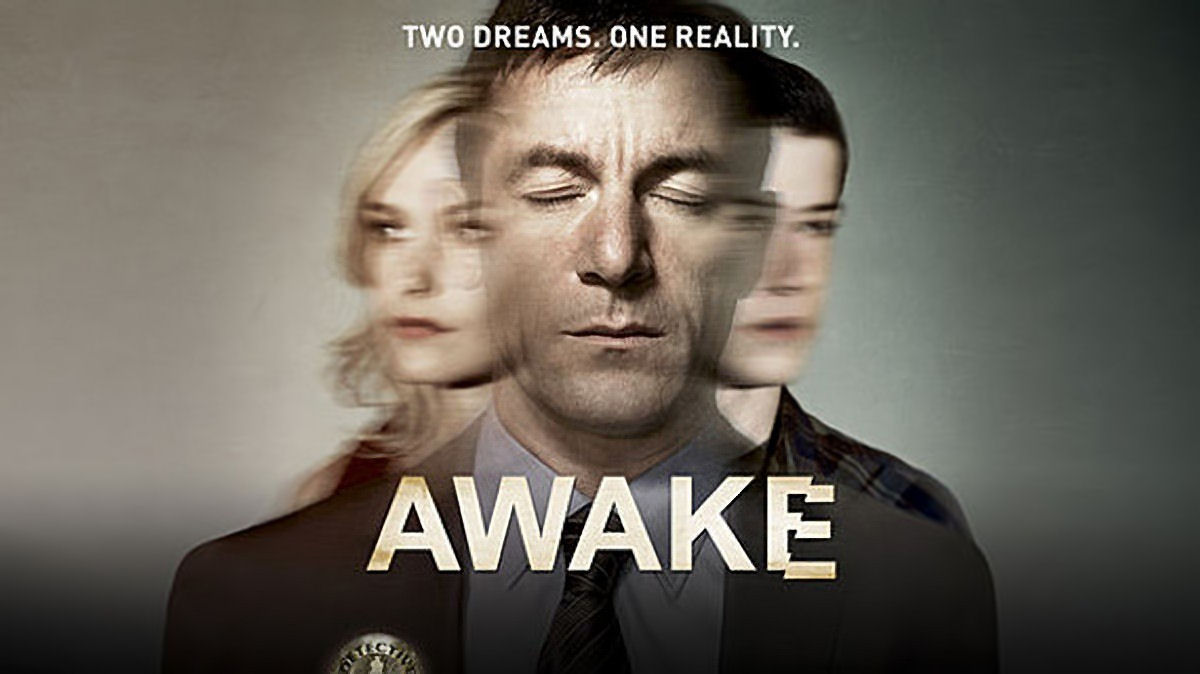 Description: A man in a suit and tie standing next to a woman in a suit and tie with the words awake on it.