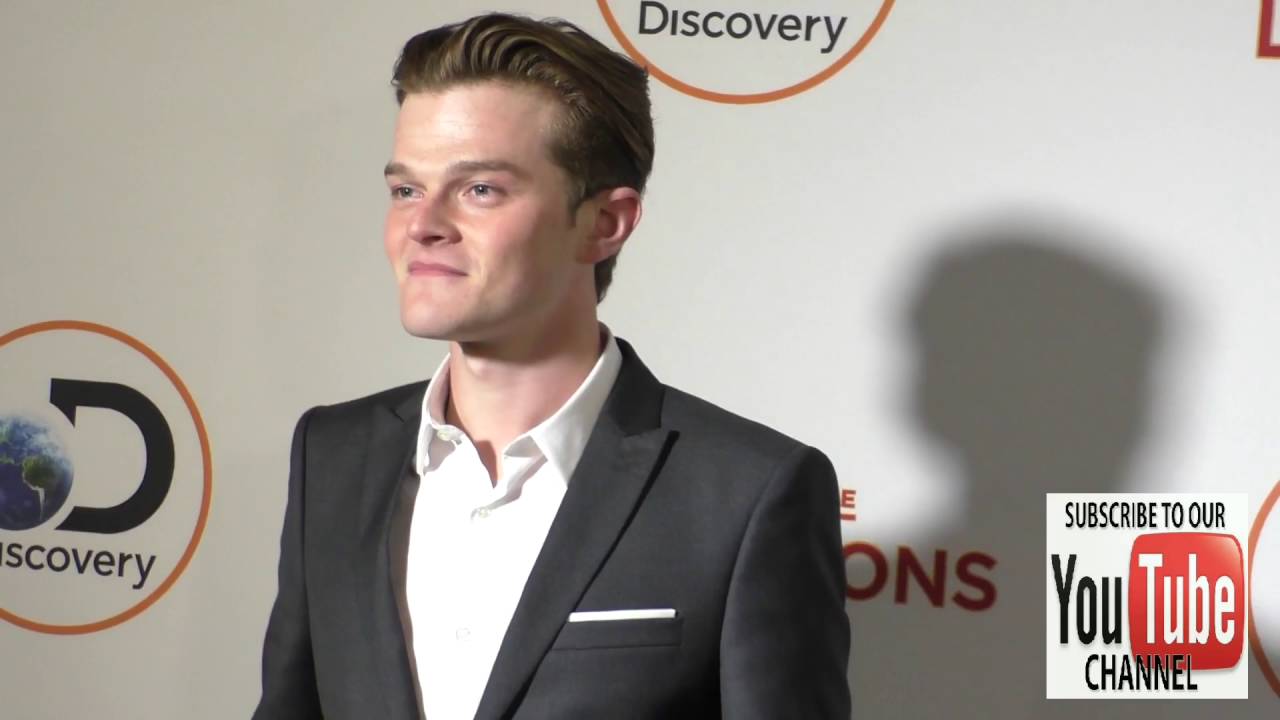 Description: A man in a suit and white shirt standing in front of a wall with a sign that says discovery discovery.
