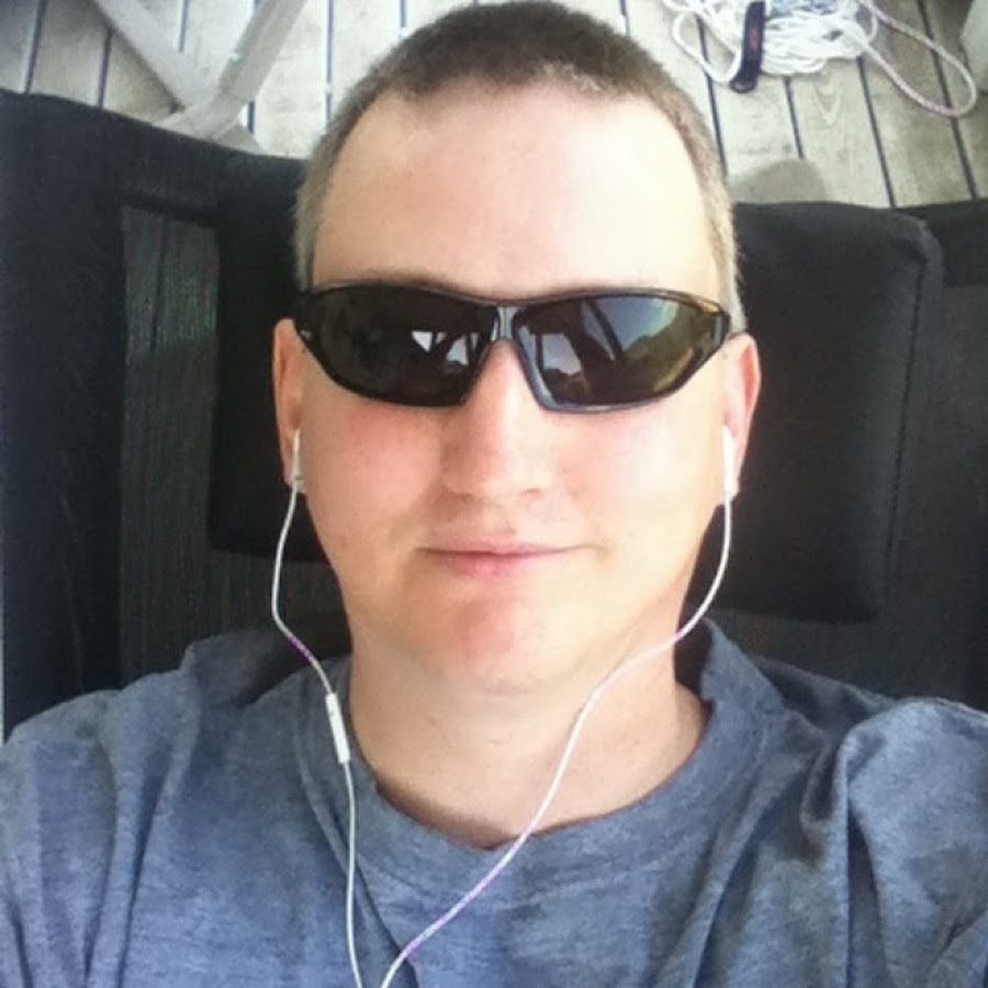 Description: A man wearing sunglasses and headphones sitting in a chair with earphones on his ears and a pair of sunglasses on his head.