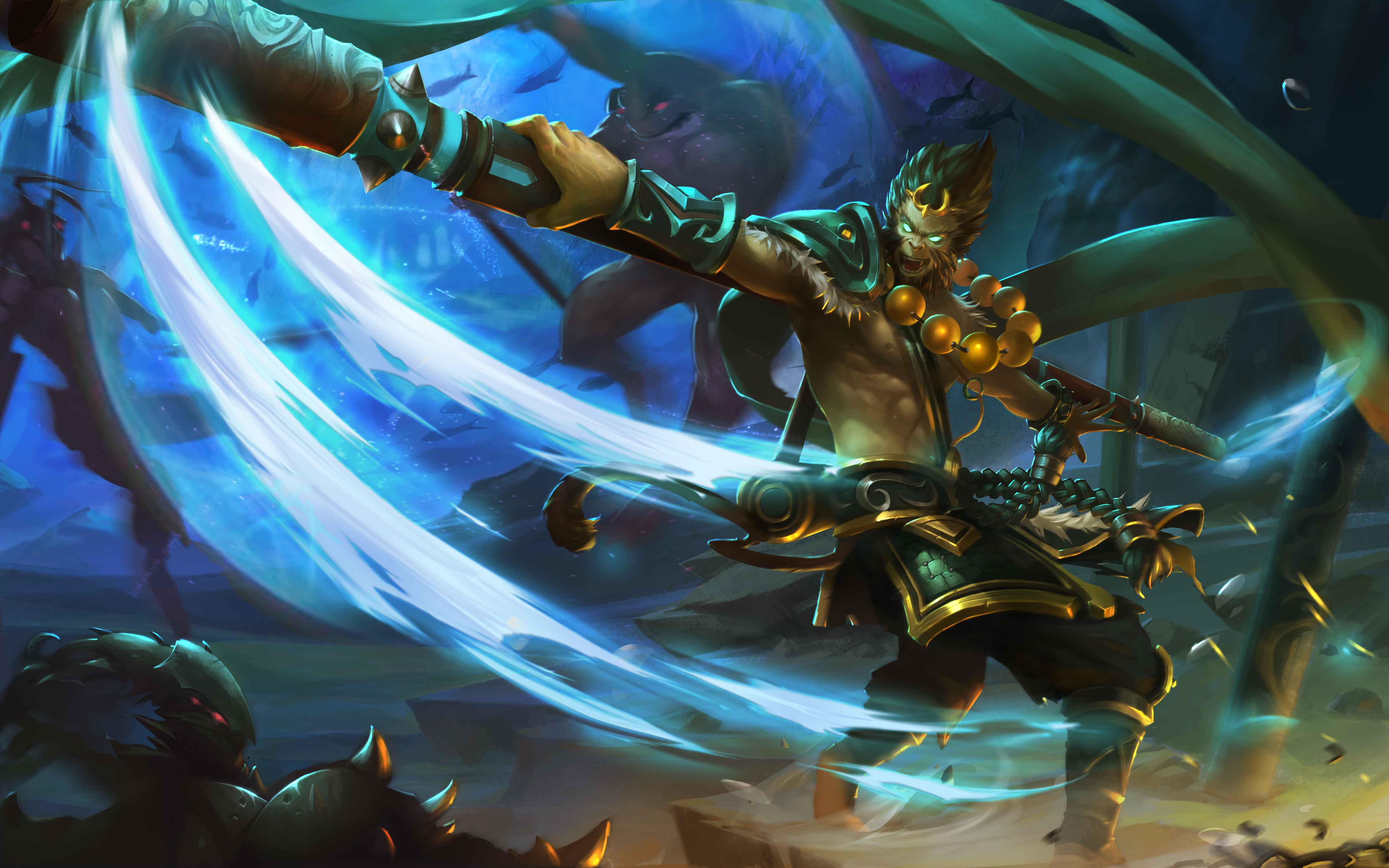 Description: A man with a sword in his hand in a game scene with a demon and a demon like creature.
