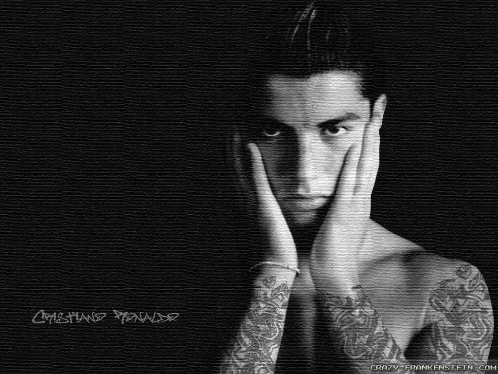 Description: A man with tattoos holding his hands to his face and looking at the camera with his hands on his face.