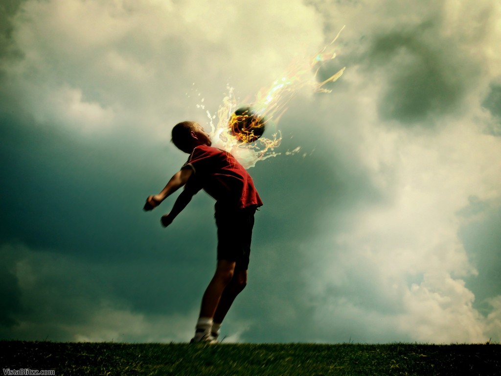 Description: A man is throwing a ball in the air with a fireball in his hand and a ball in his other hand.