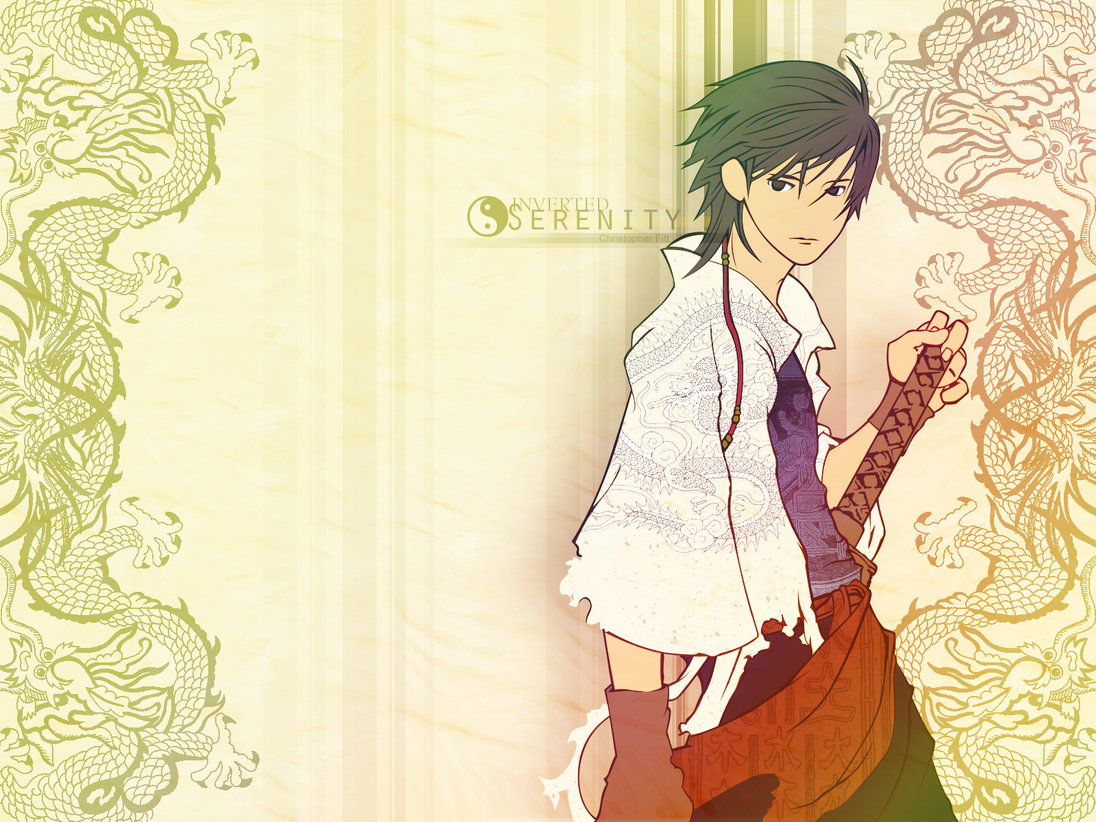 Description: A man with a tie and a shirt on holding a cigarette in his hand and a dragon on the wall behind him.