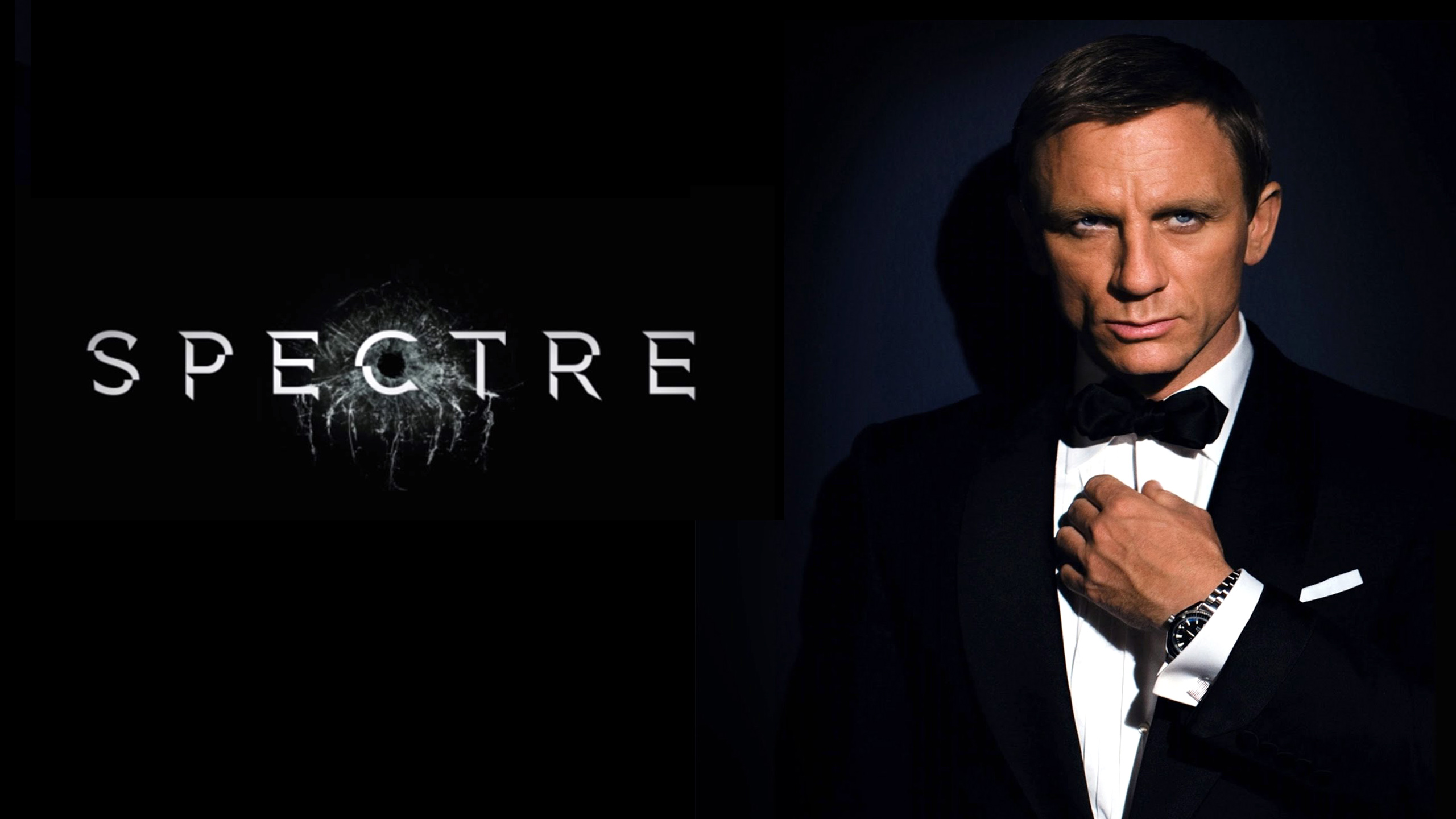 Description: A man in a tuxedo and a spectre logo on a black background with a black background.