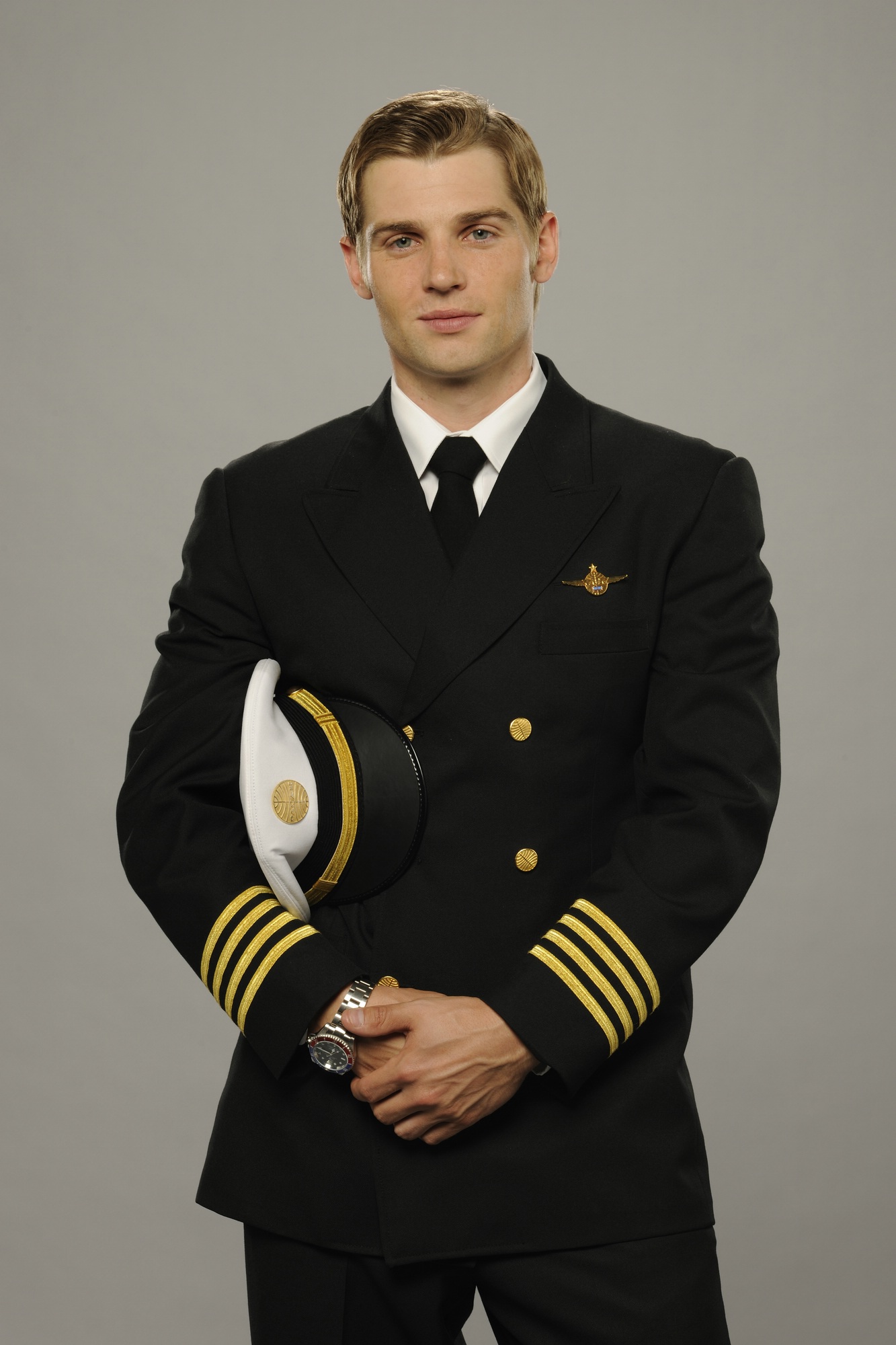 Description: A man in a uniform is holding a hat and a watch on his left hand and a watch on his right hand.