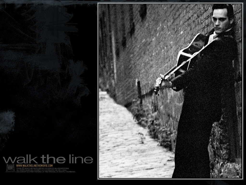 Description: A man holding a violin leaning against a wall next to a brick wall with a black and white photo of a man.