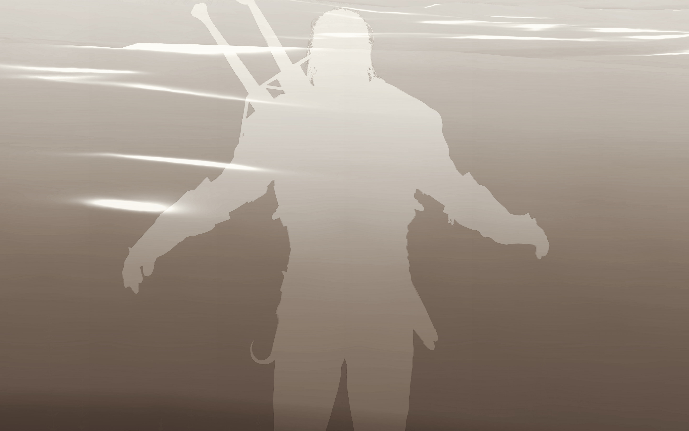 Description: A man standing in the water with a ski pole in his hand and a snowboard in his hand.