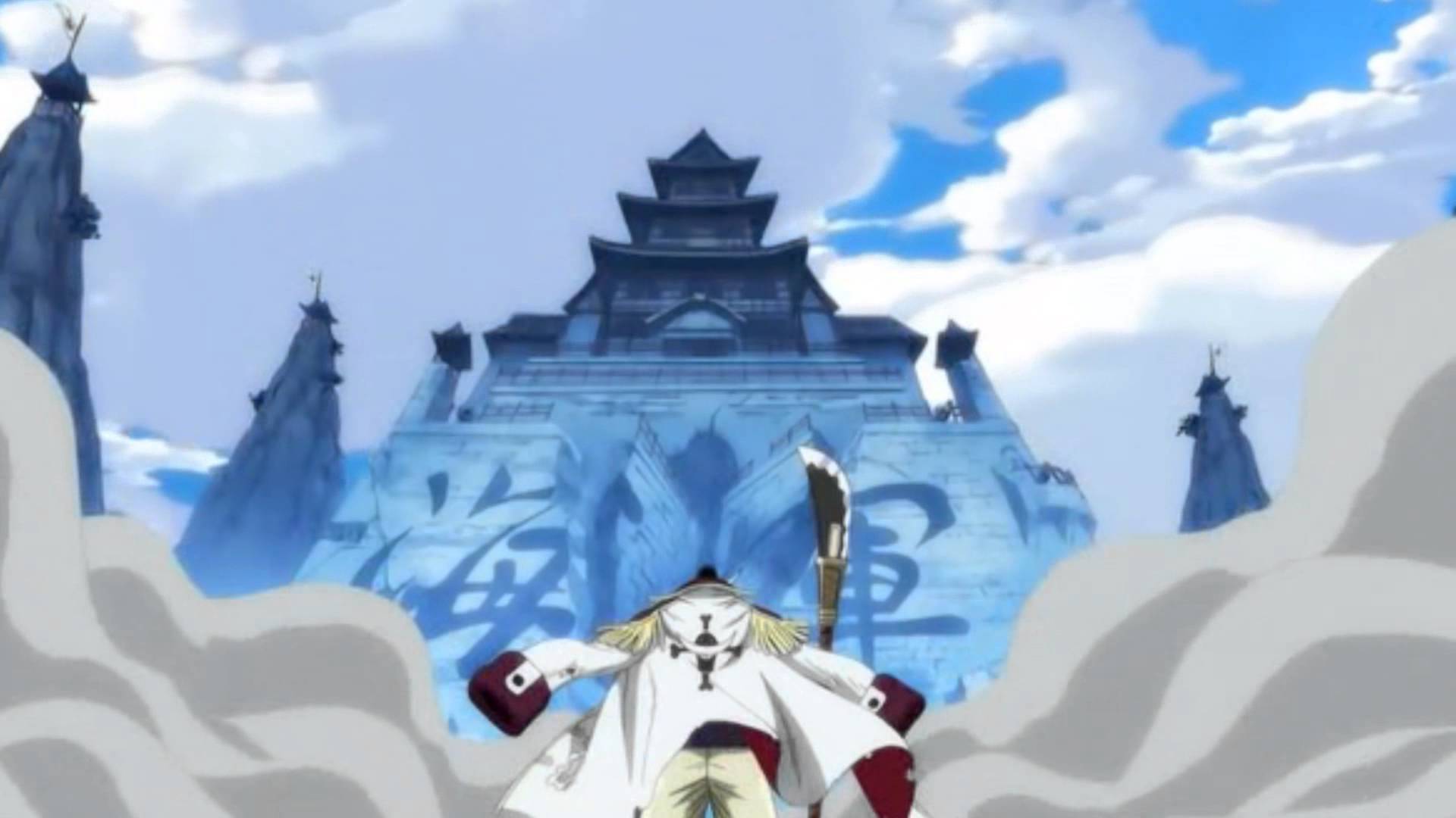 Description: A man in a white outfit standing in front of a castle with a sword in his hand and a sky background.