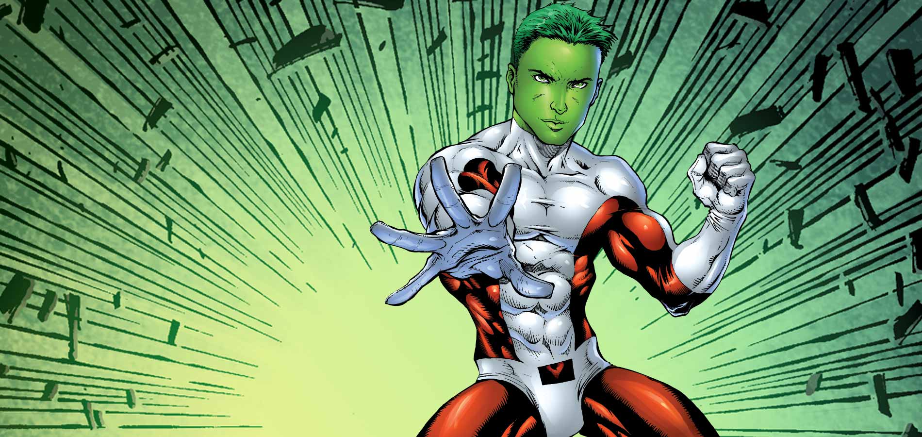 Description: A man in a white and red suit with a green hair and a green nose and a green nose.