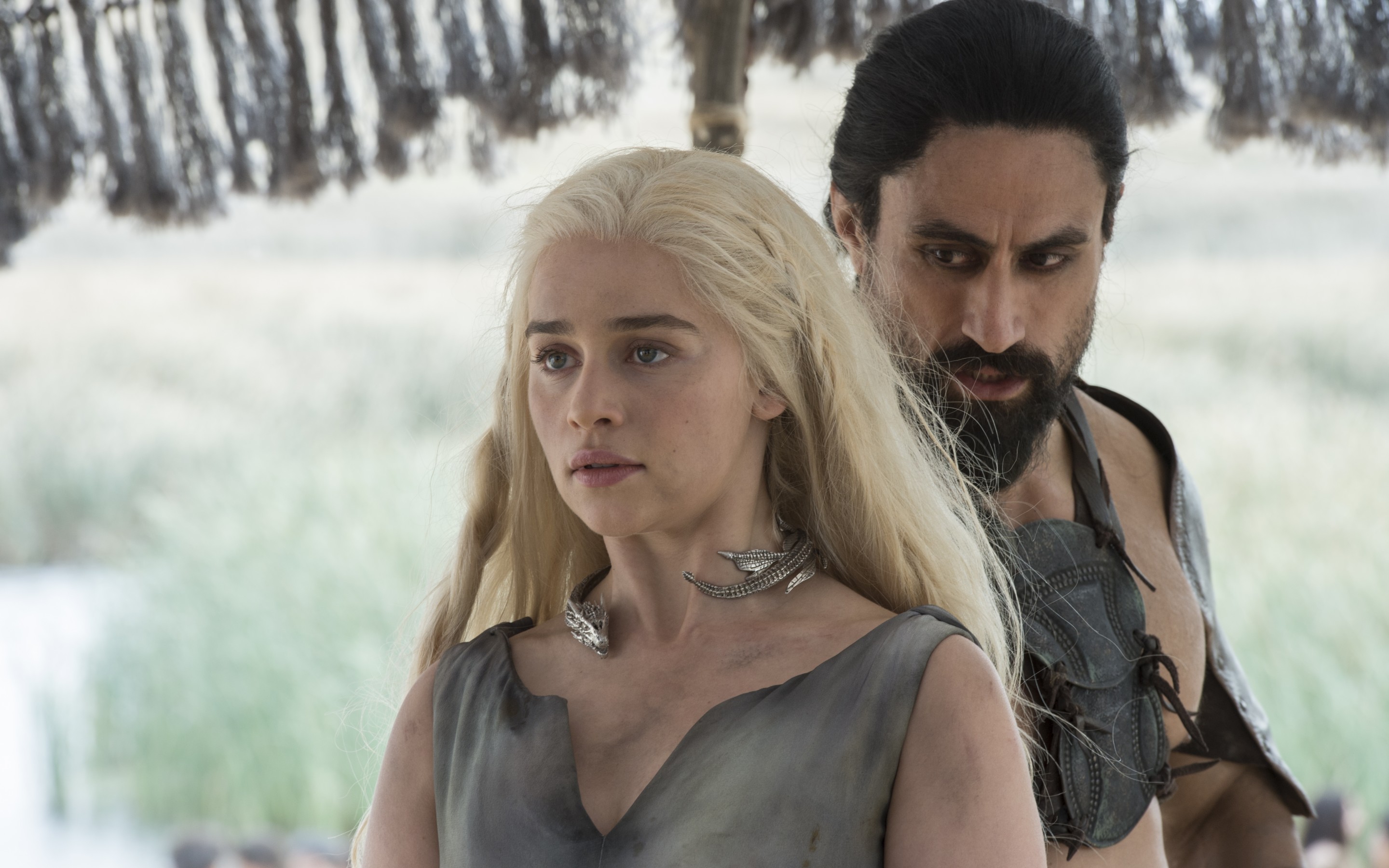 Description: A man and a woman standing next to each other in a forest with a tree branch hanging over them.