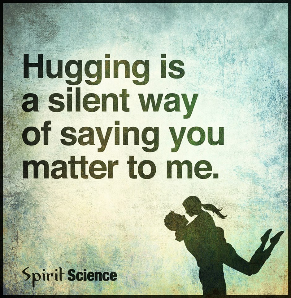 Description: A picture of a man and a woman hugging each other with a quote on it that says hugging is a silent way of saying you matter to me.
