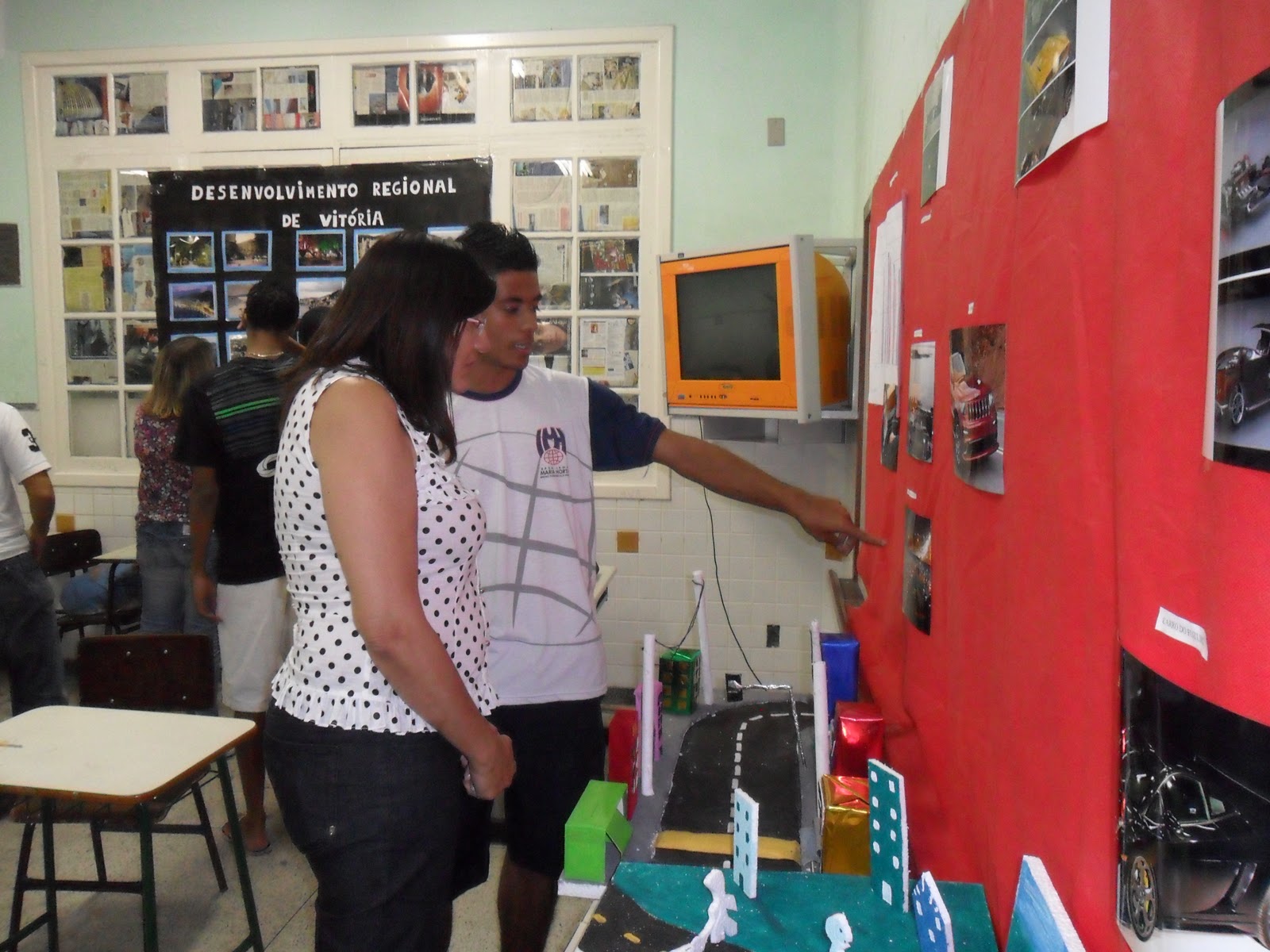 Description: A man and woman standing in front of a red wall with a tv on it and a red wall with pictures on it.