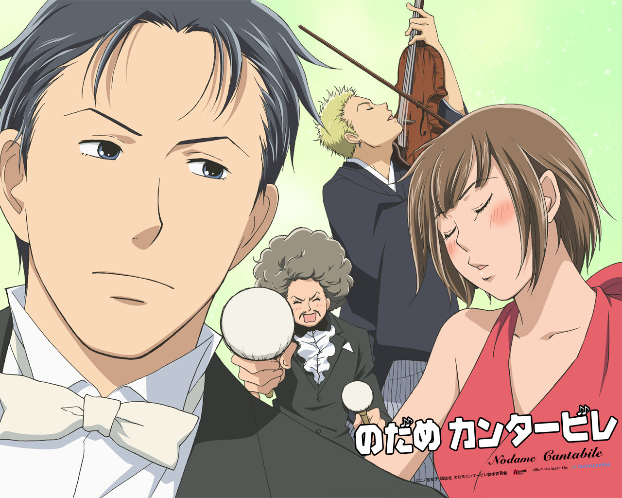 Description: A man and woman are standing in front of a violin player and a violin player.