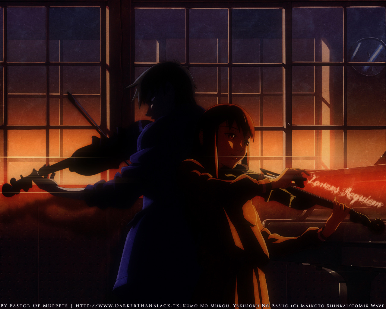 Description: A man and a woman are standing in front of a window with a violin in their hands and a plane in the background.