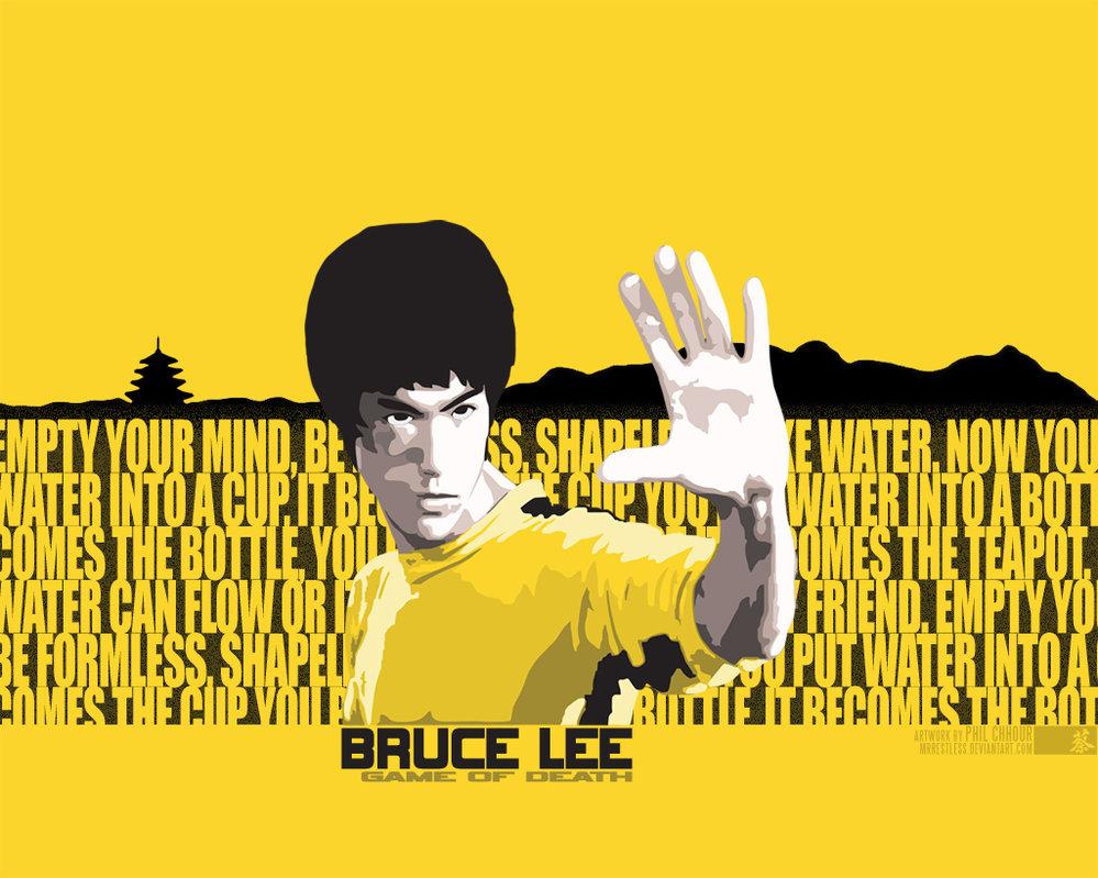 Description: A man with a yellow shirt and a yellow background with words surrounding him and a yellow background with a yellow background.