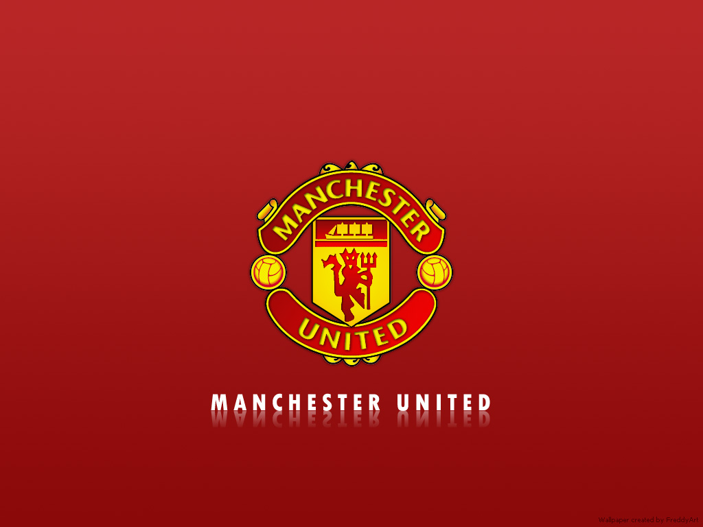 Description: A manchester united logo on a red background with the name manchester united on it and a lion on the front.