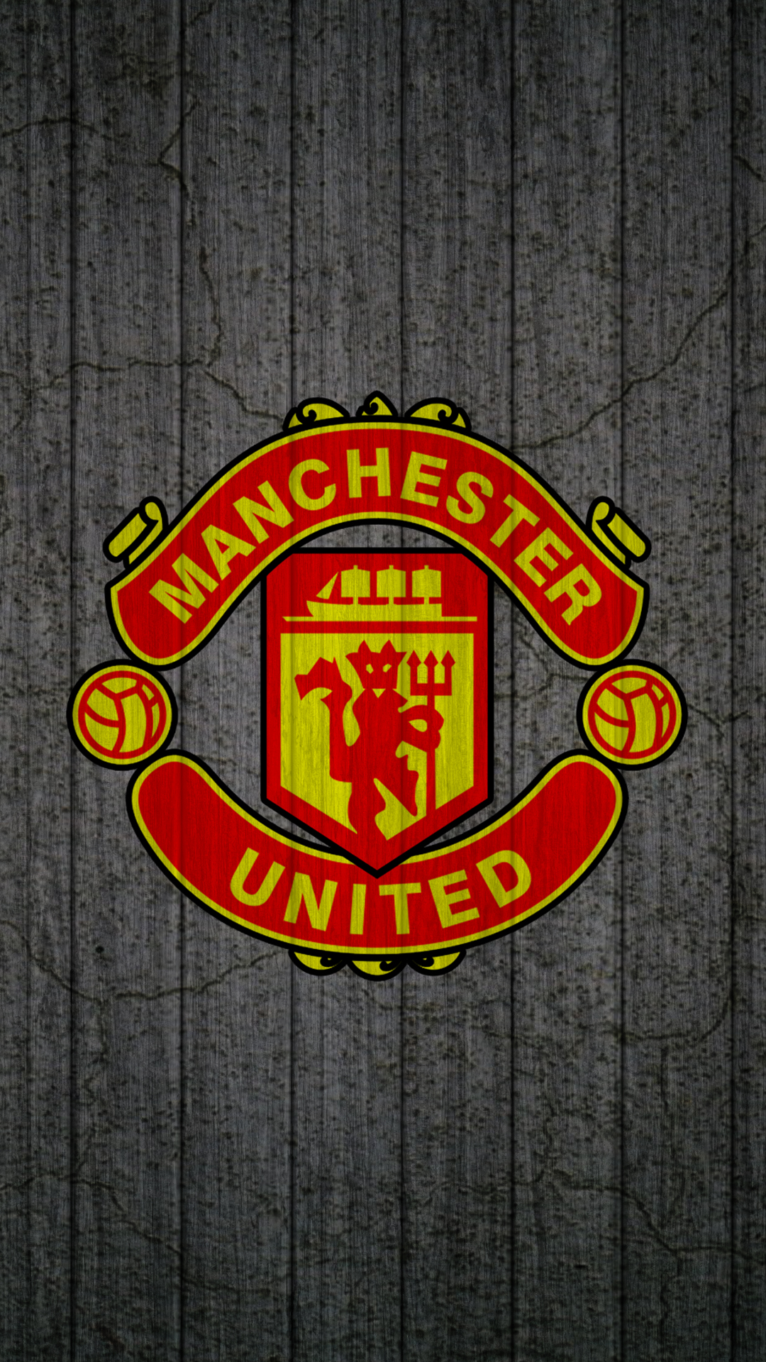 Description: A picture of a manchester united logo on a wooden wall with a grungy effect to it's center.