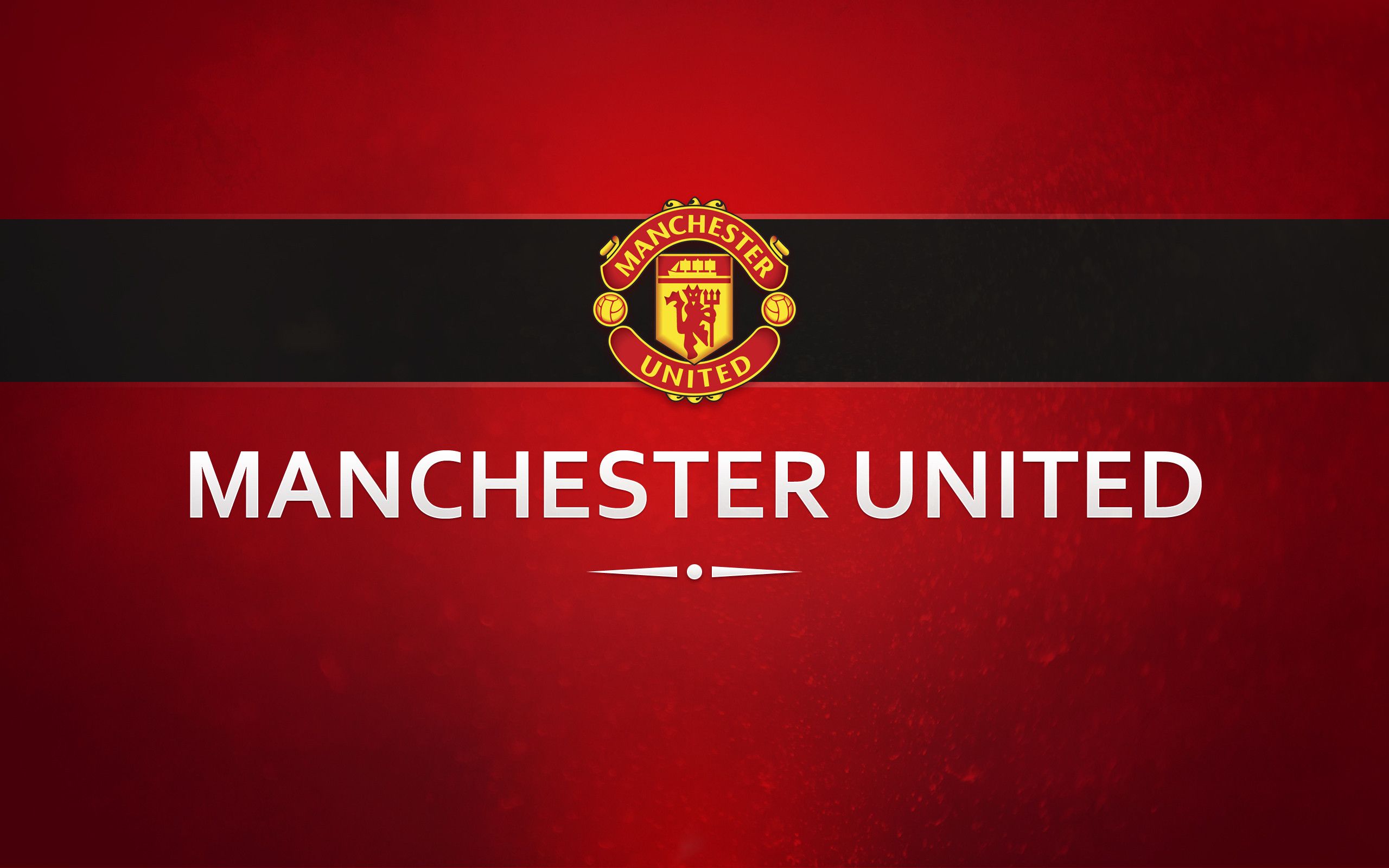 Description: A manchester united wallpaper with the name of the team on it and a black and red stripe on the bottom.