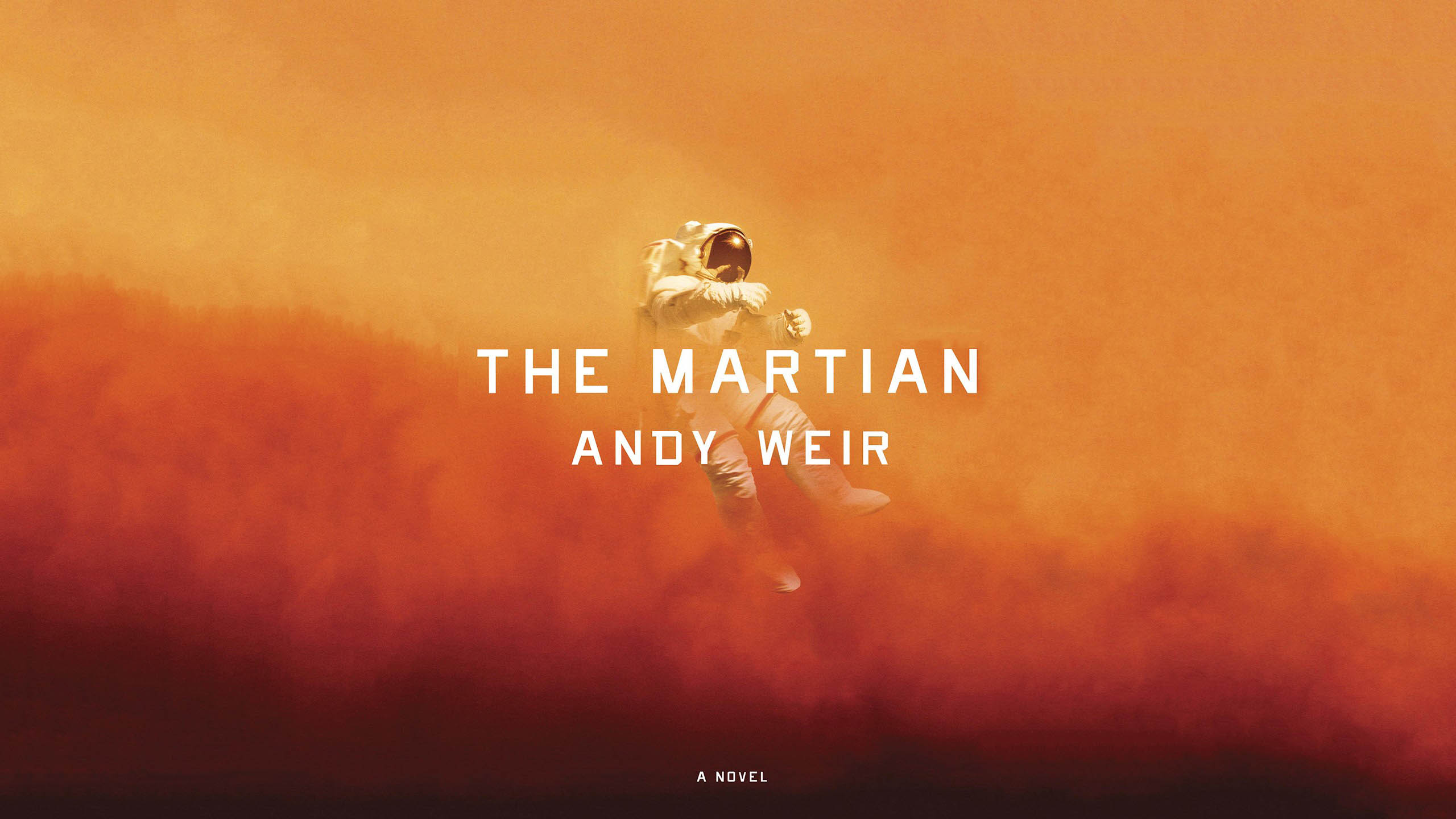 Description: A man in a space suit is in the air with a red background and the words the martian and the image of an astronaut.