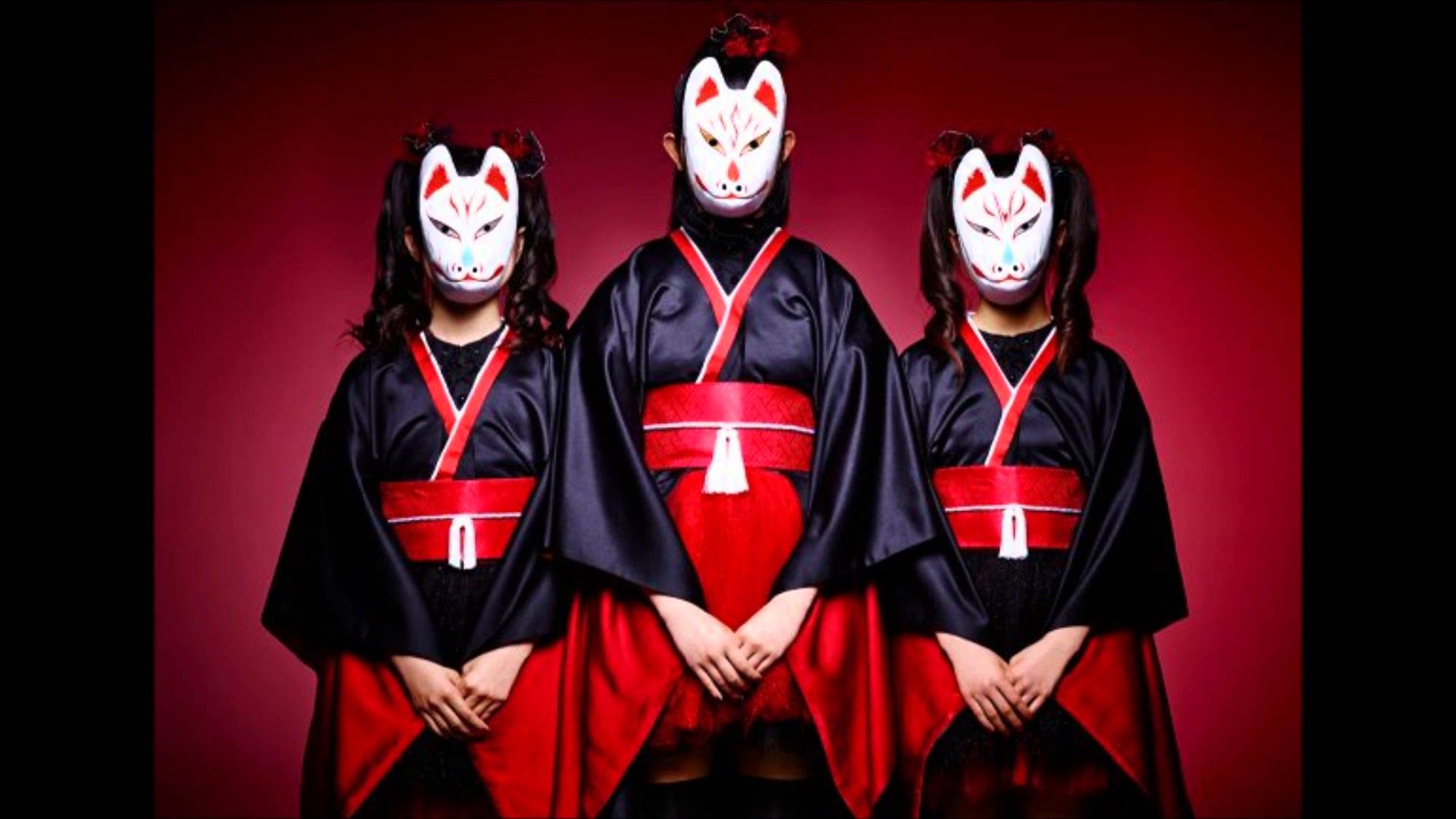 Description: Three people wearing masks and red robes with black hair and red eyes and a red background with a red background.