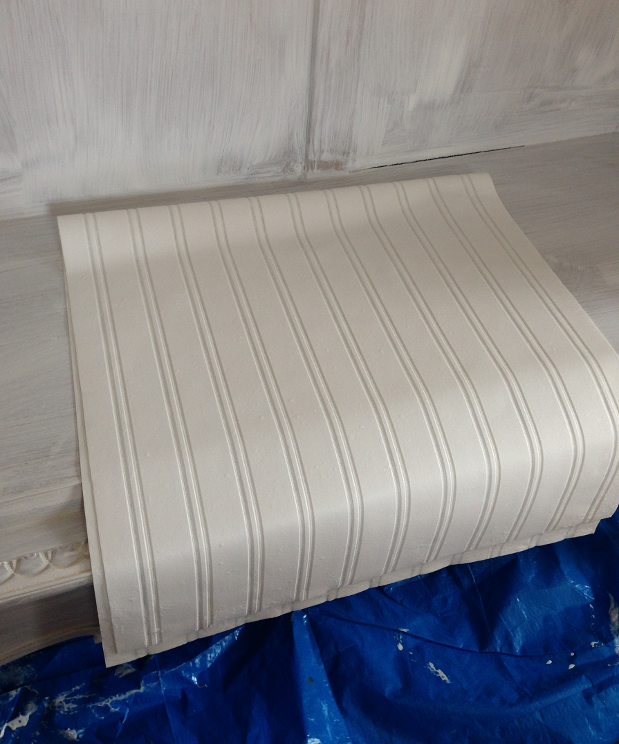 Description: A mattress is laying on a plastic sheet on a bed frame with a blue tarp covering it and a white wall behind it.