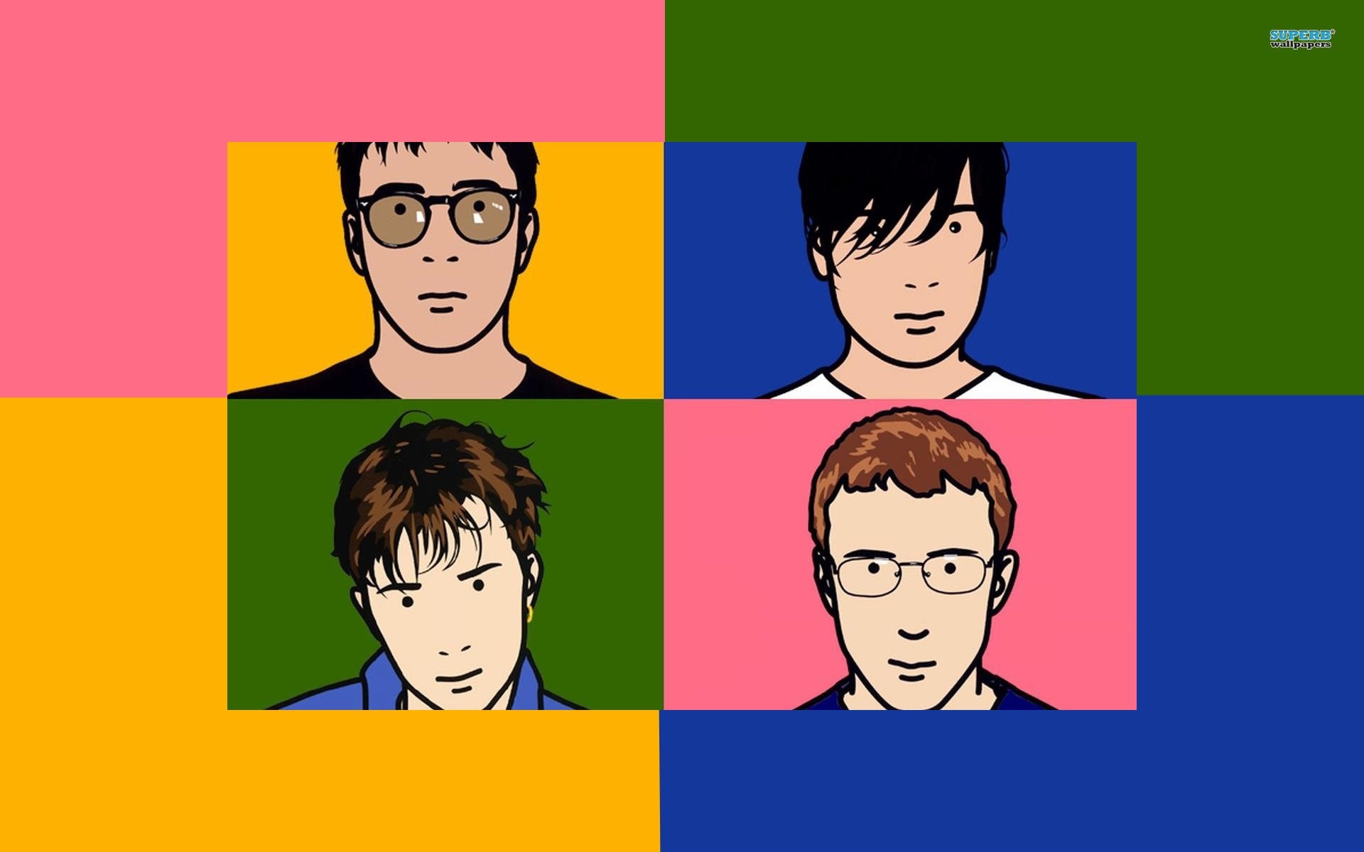Description: A group of four men with glasses on each of them's faces in different colors of squares with the same man's face.