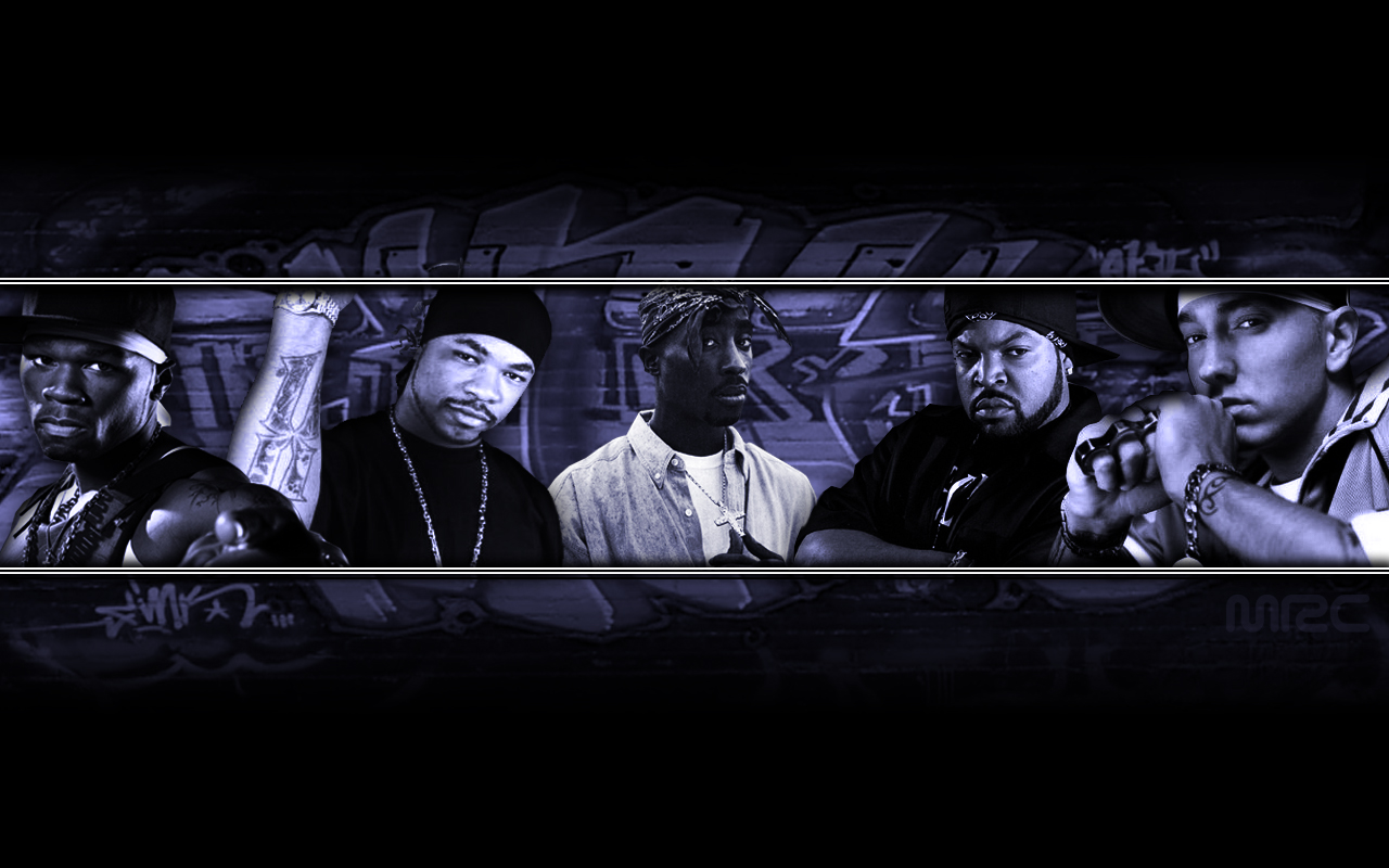 Description: A group of men standing next to each other in front of a wall with graffiti on it and a black background.