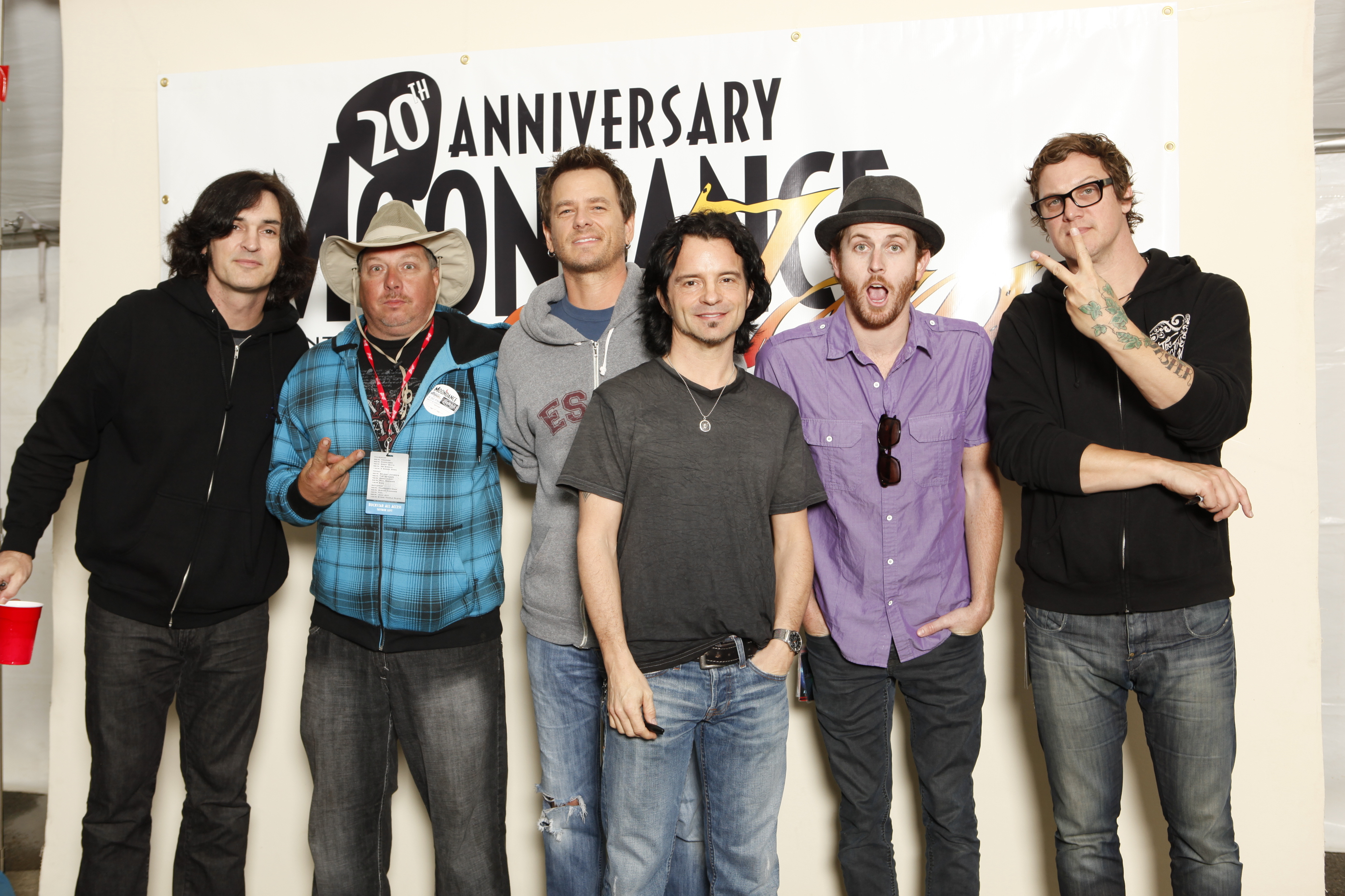 Description: A group of men standing next to each other in front of a sign that says 30th anniversary agonce.