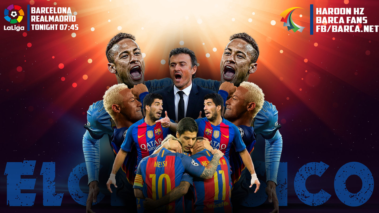 Description: A group of men standing next to each other in front of a poster of soccer players with their mouths open.