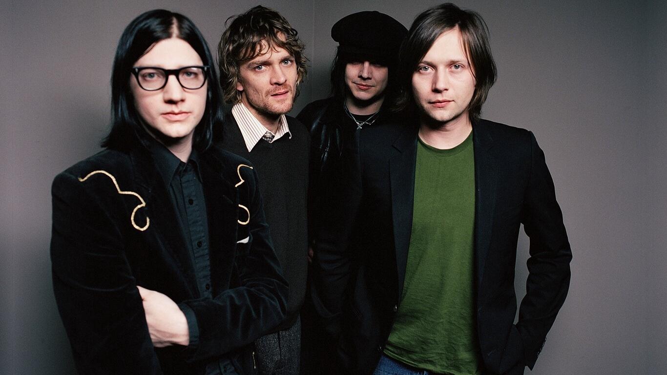 Description: A group of men standing next to each other in front of a wall with a green shirt on and black jacket.