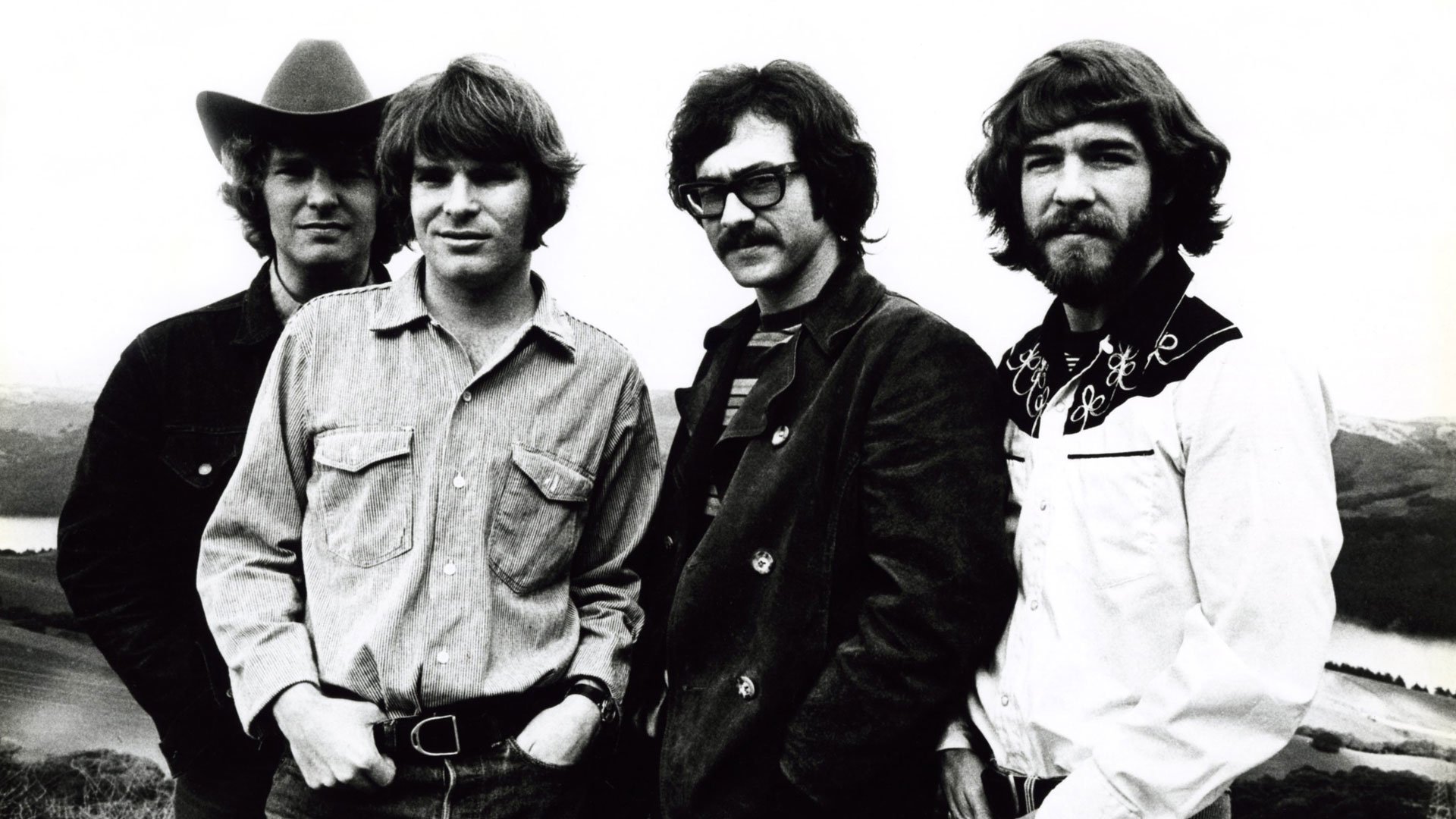 Description: A group of men standing next to each other in front of a lake and mountains in the background.