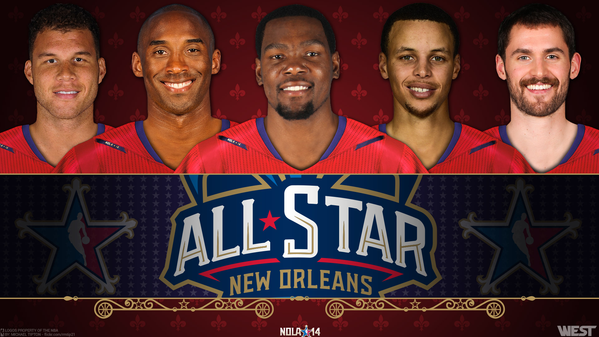 Description: A group of men standing next to each other in front of a red background with all star new orleans.