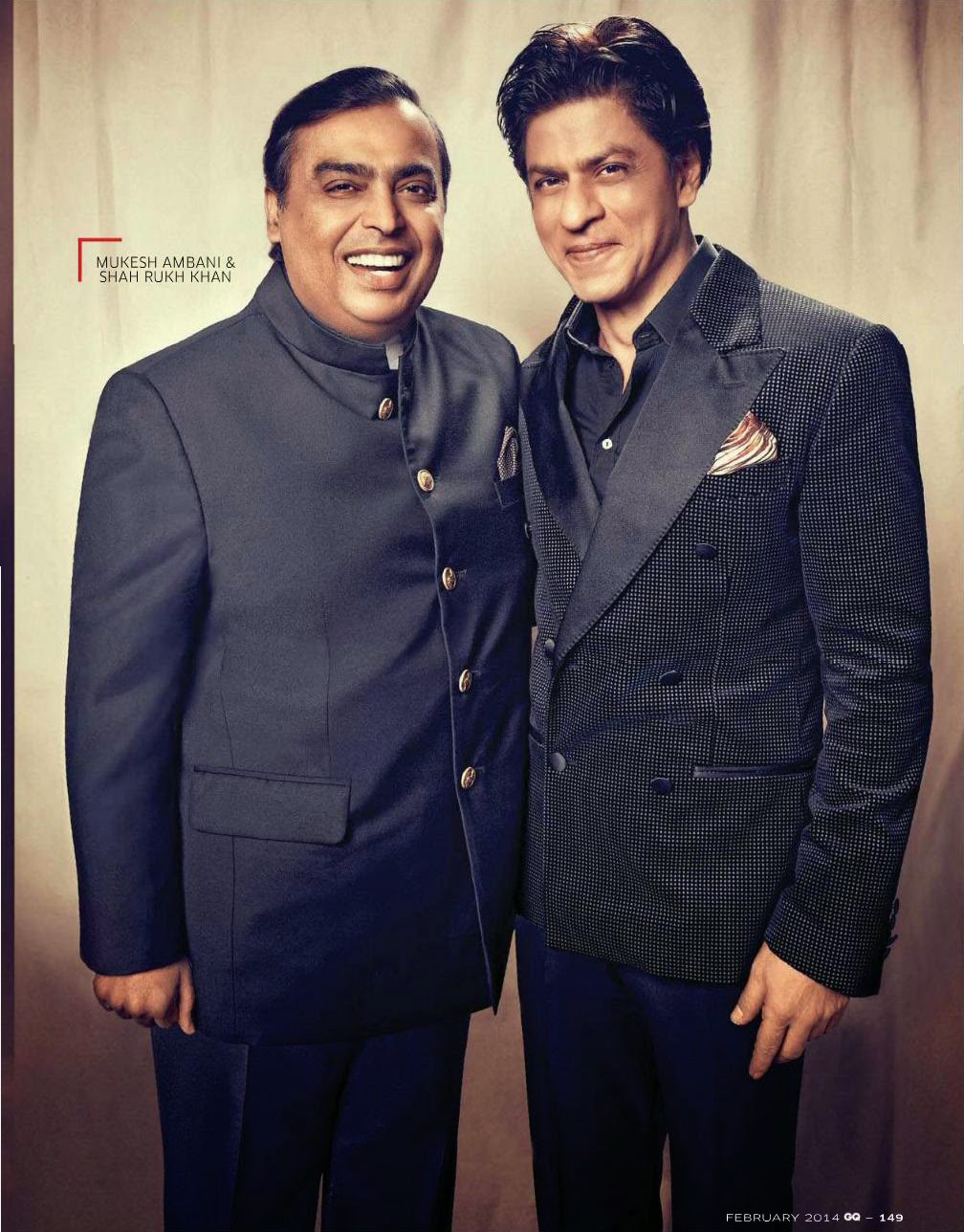 Description: Two men in suits posing for a picture together in front of a curtain with a backdrop of a curtain.