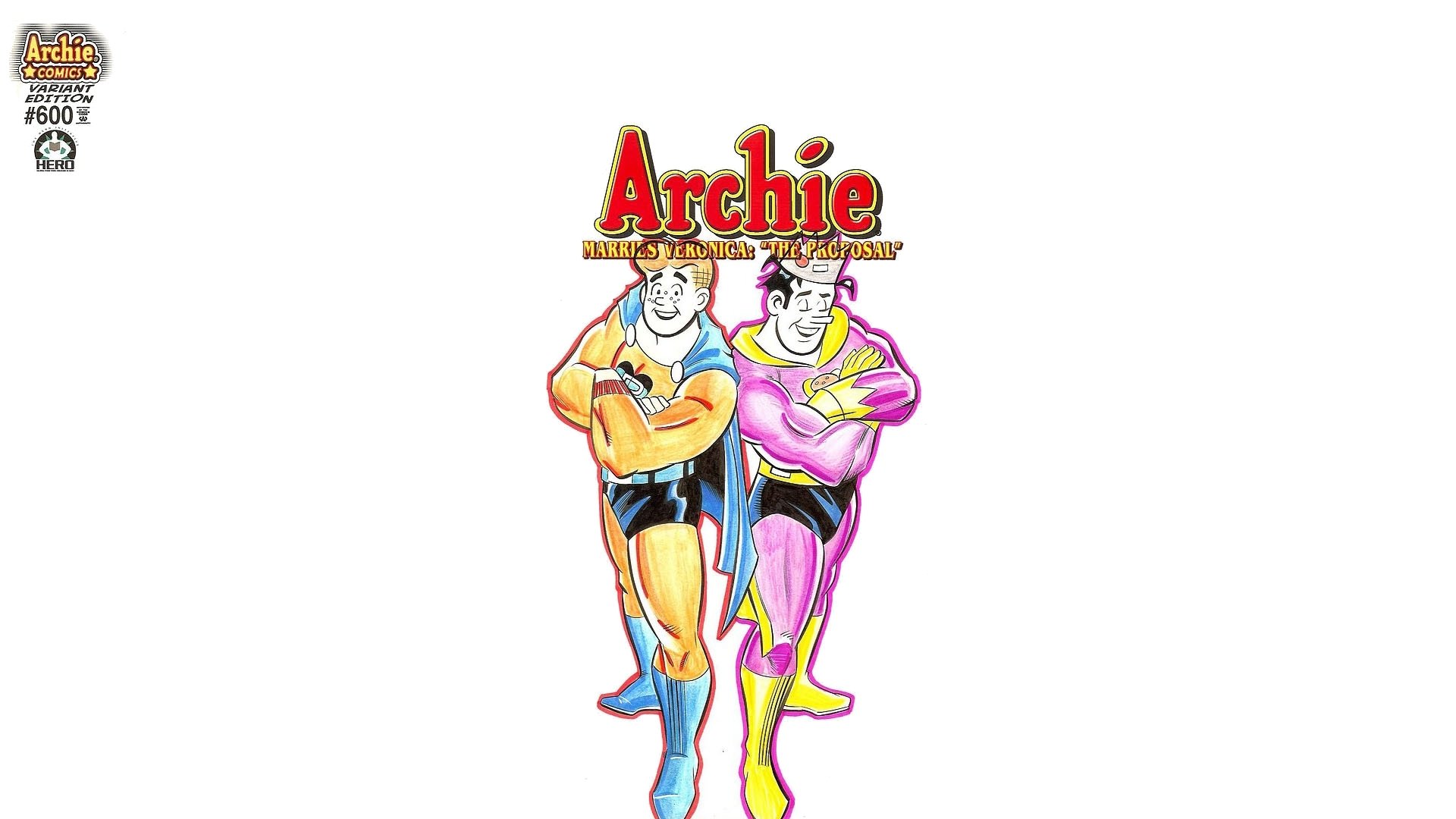 Description: A drawing of two men in swim suits and one is holding a guitar and the other is holding a microphone.