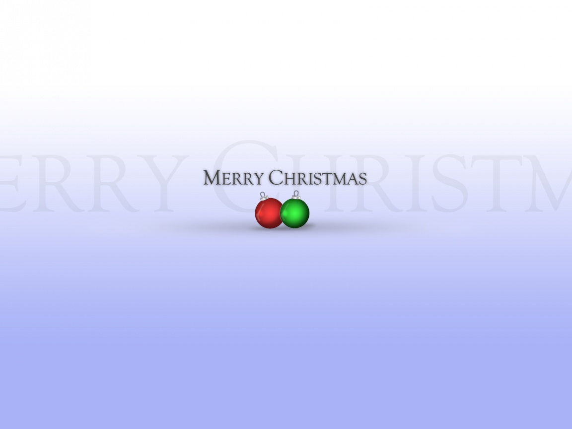 Description: A merry christmas message with two balls on a blue background with a green and red ball on the bottom.