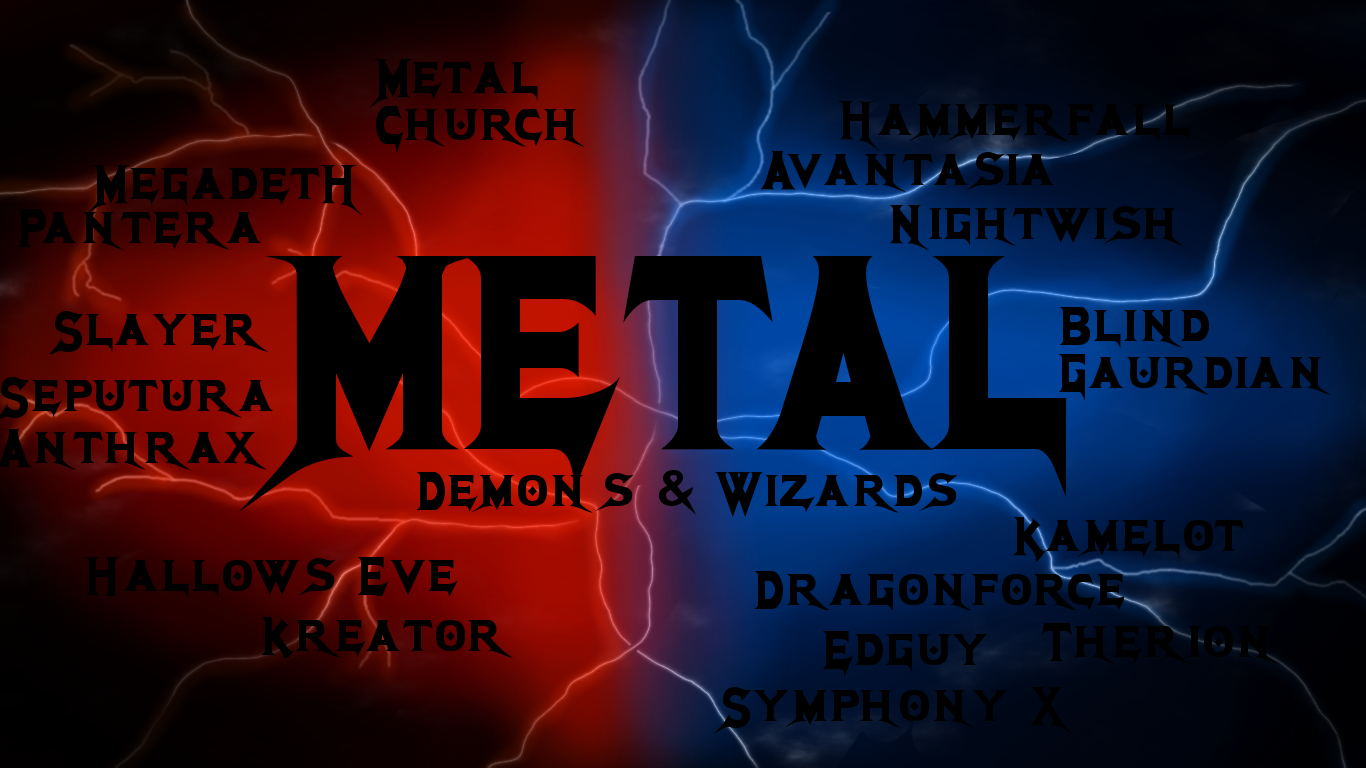 Description: A picture of a metal band logo with the names of their bands on it and a lightning background with the words metal.