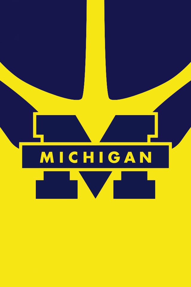 Description: Michigan university logo on a yellow background with blue and yellow colors and a black outline with the michigan logo.