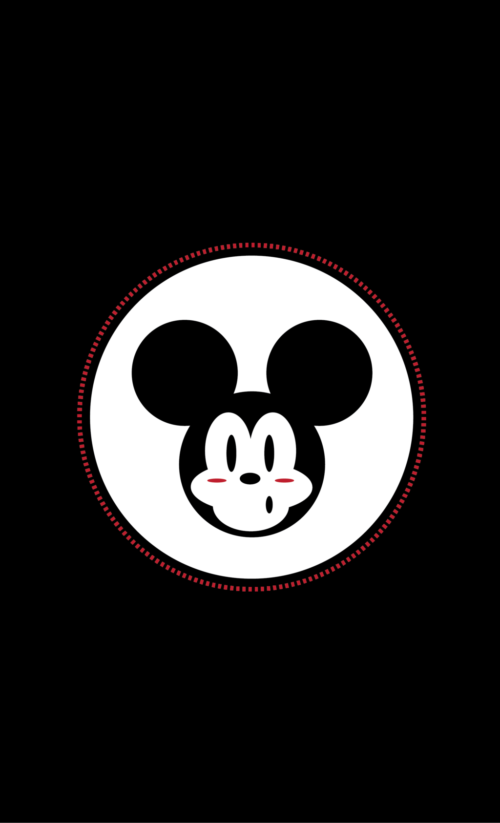 Description: A mickey mouse face with a red dot around it's eyes and nose.