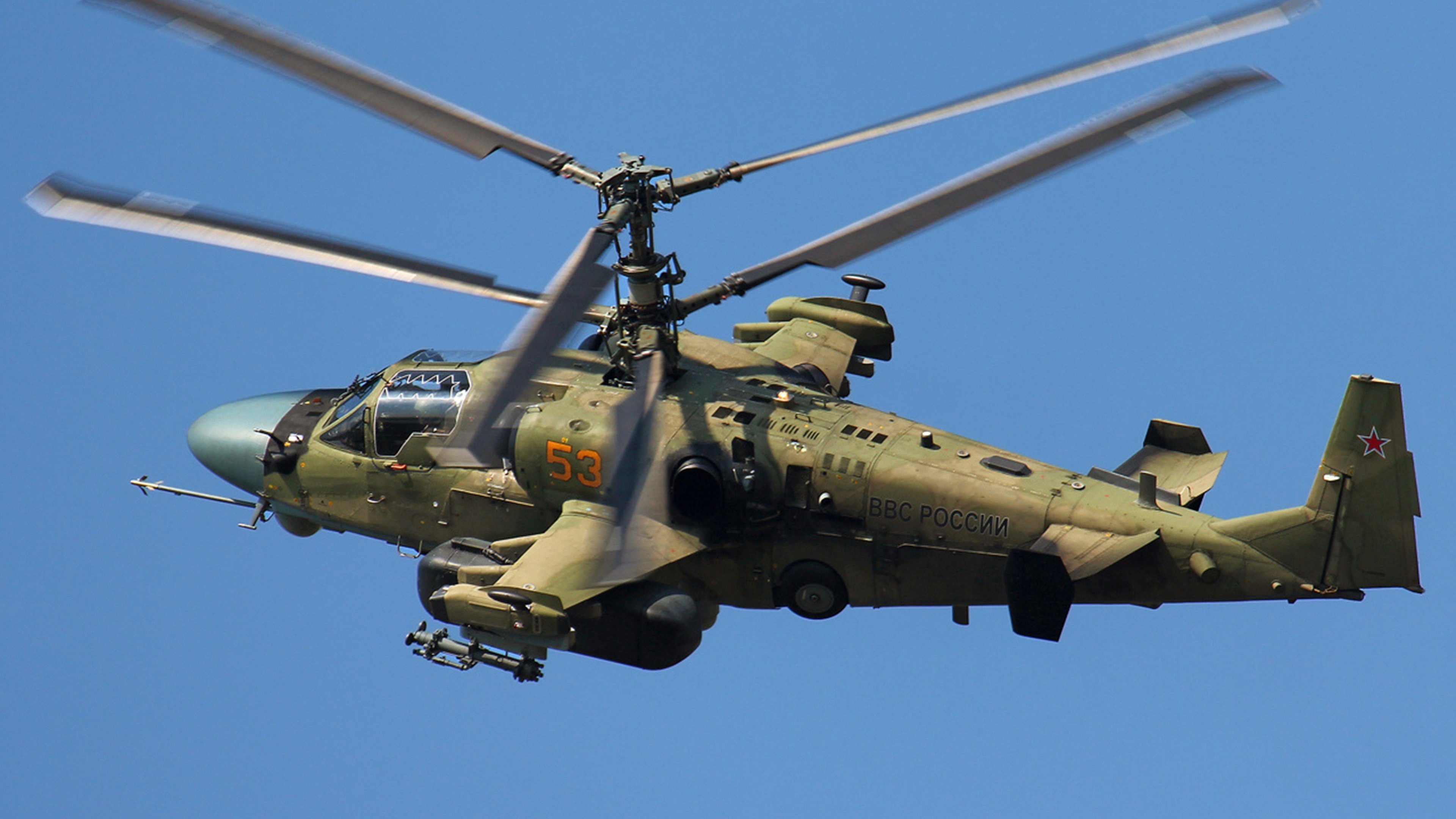 Description: A military helicopter flying through a blue sky with propellers on it's wings and a propeller on the front of the helicopter.